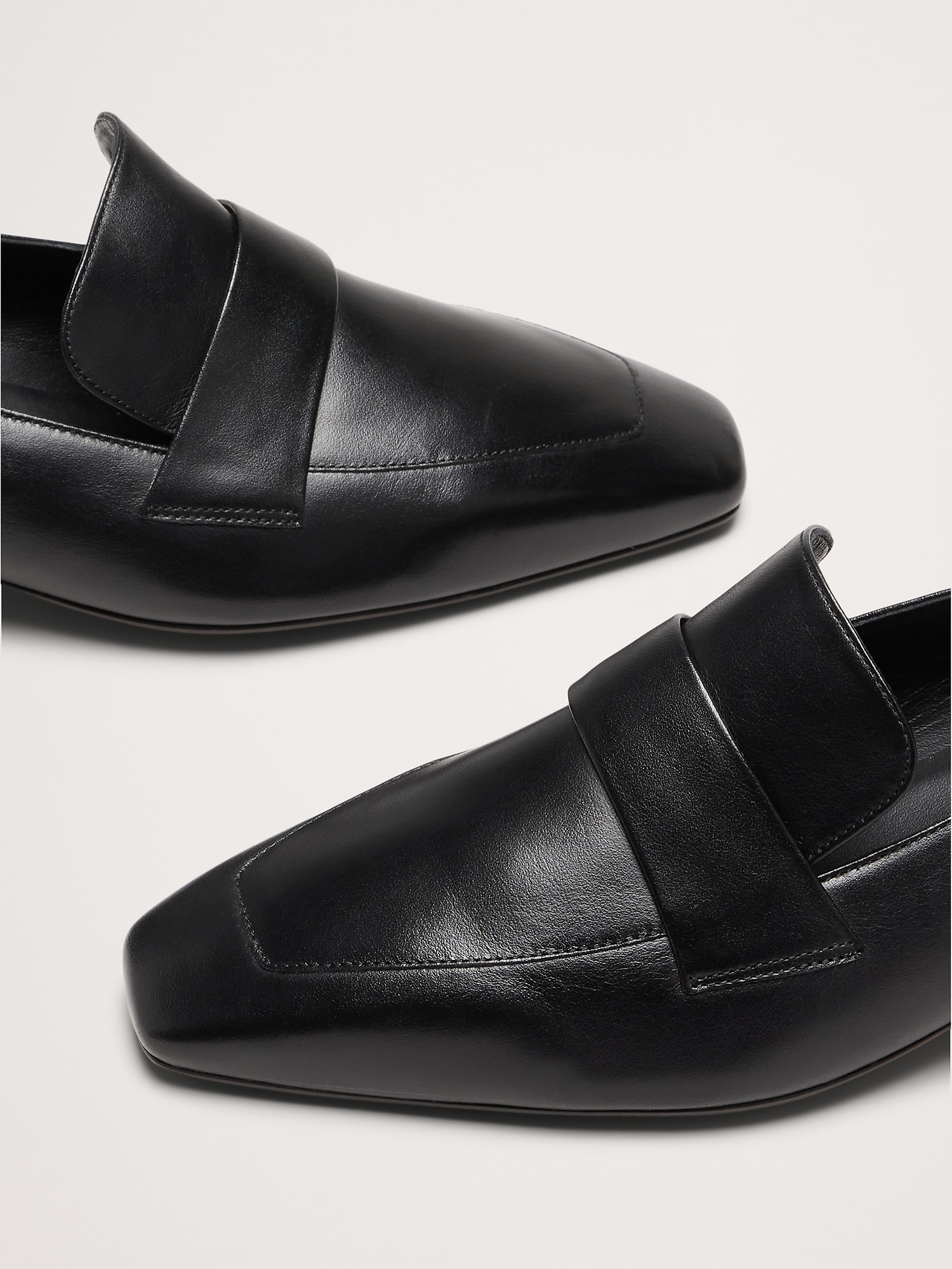 These sleek loafers are crafted from soft and sturdy Italian leather with a not-too-high heel for everyday wear. Here, we finished the style with a squared-pointed toe shape.