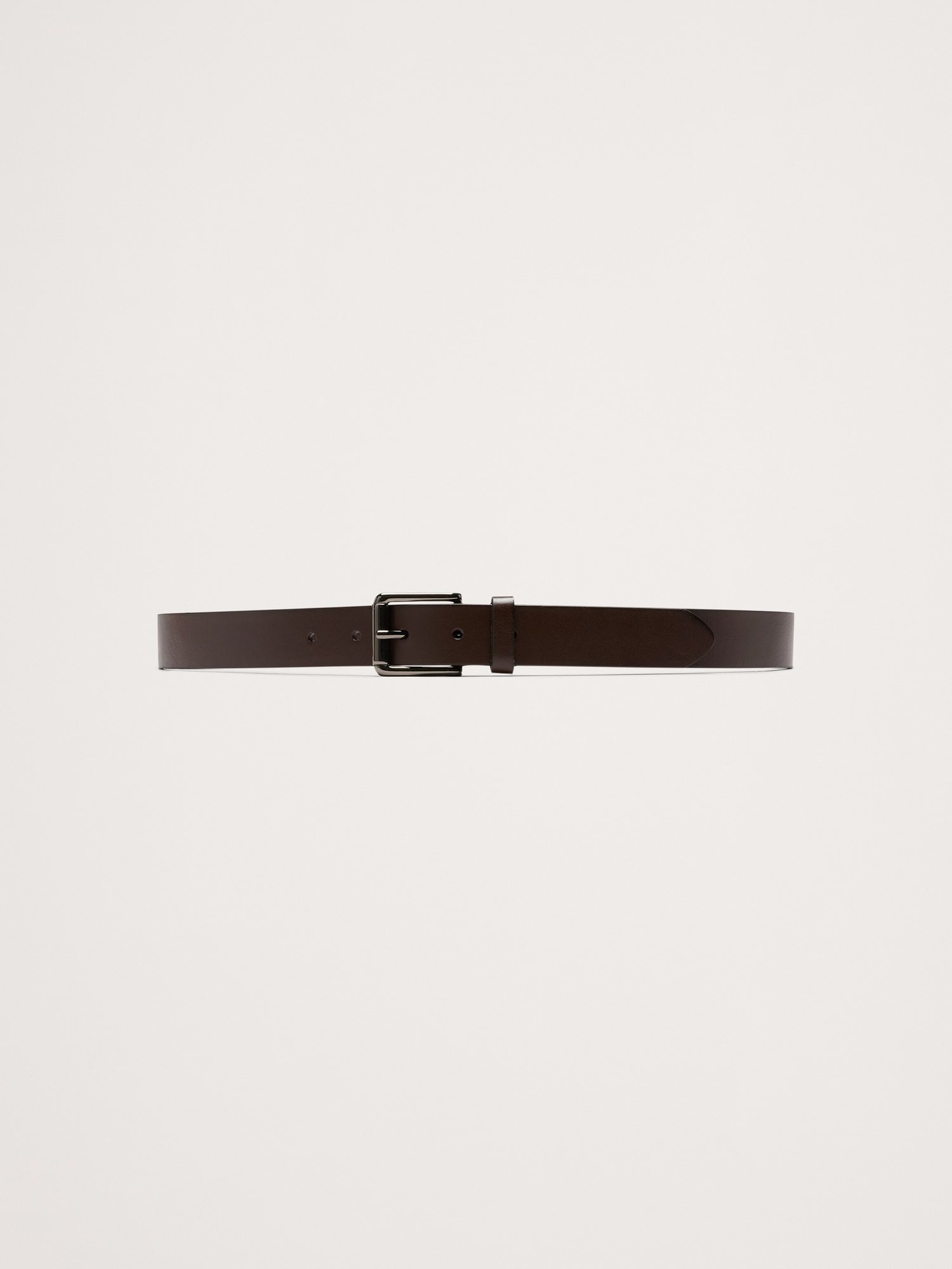 This versatile belt is cut from beautiful, sturdy leather and finished with beveled edges for a sleek look that works well dressed up or down.