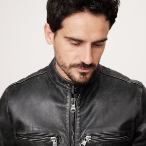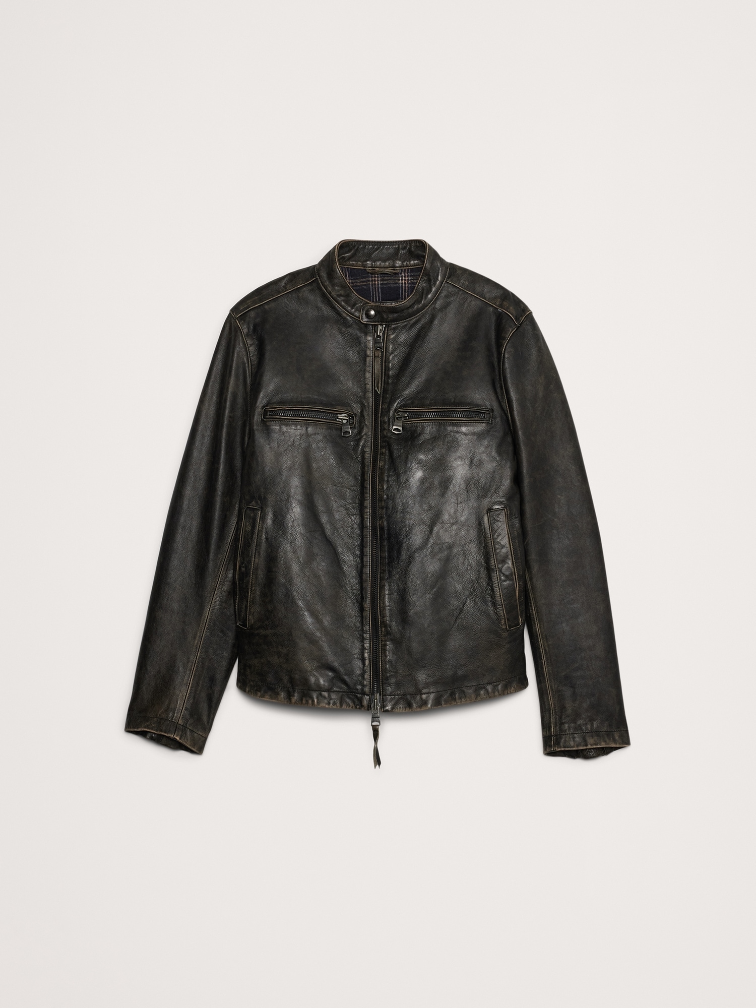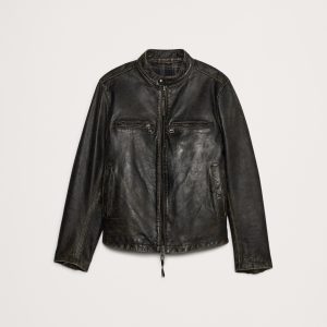 Crafted from supple leather with a silky soft interior lining, this classic moto jacket is finished with all of the traditional features you’d want in a moto jacket, like a banded collar over the neck and grommets under the arms to prevent overheating.