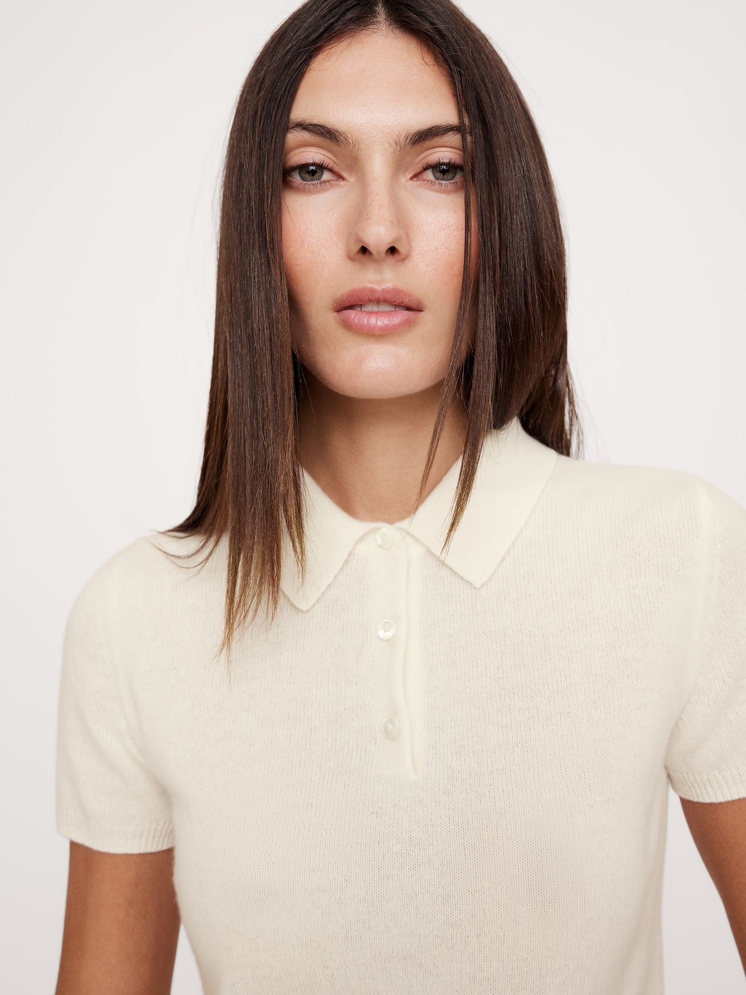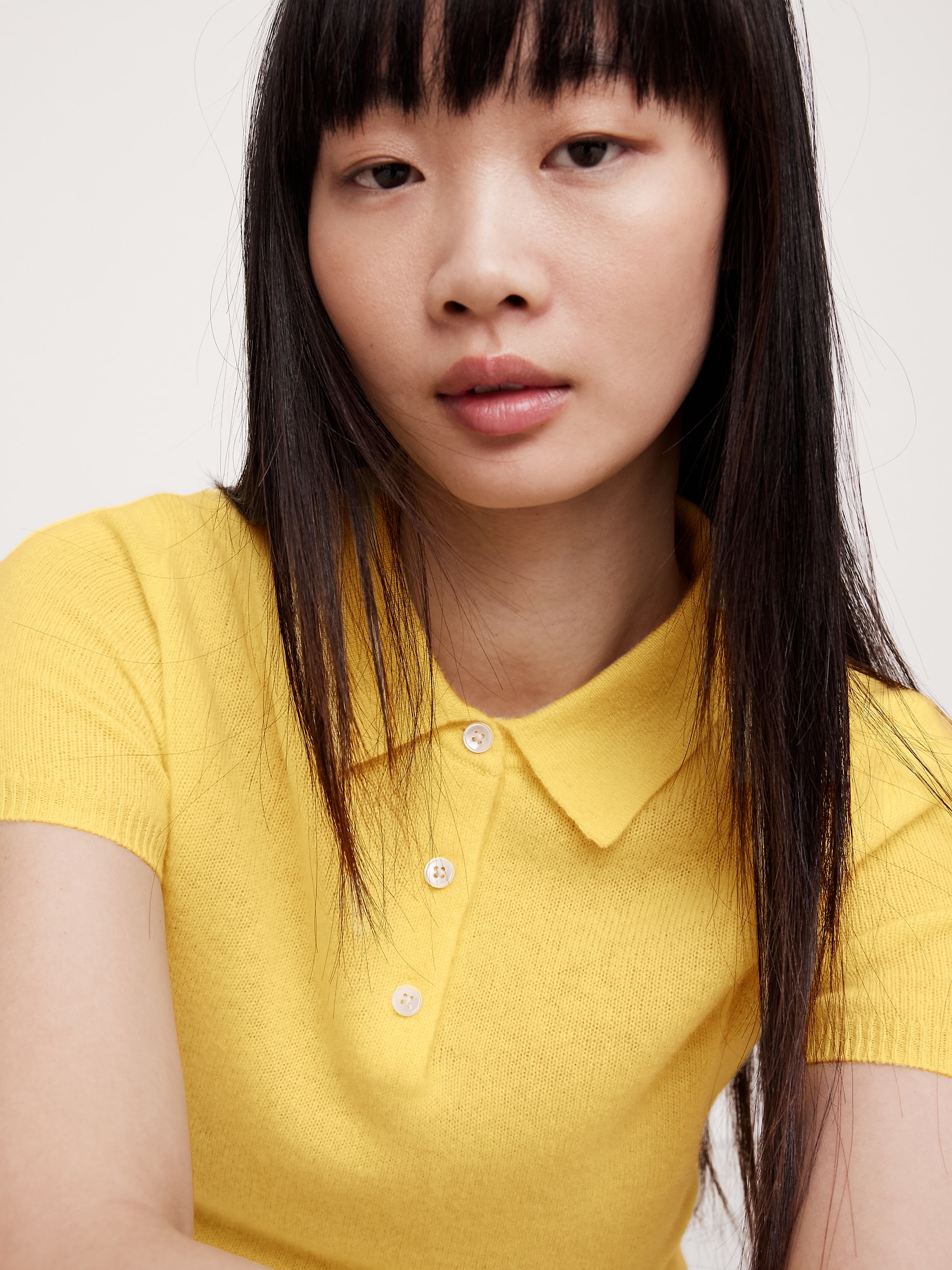 The vibe is lightweight luxury. This classic sweater polo has not-too-tight fit through the body, in our lightweight cashmere yarn.