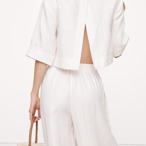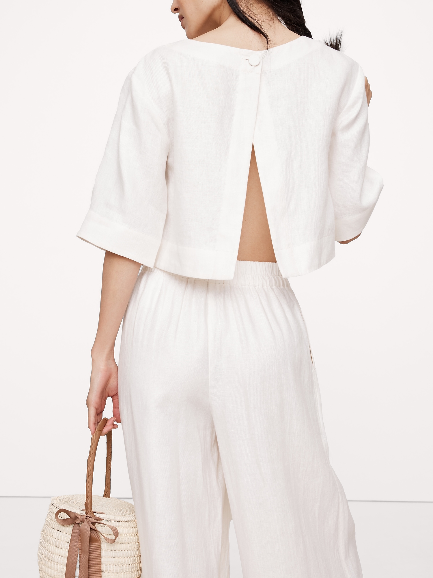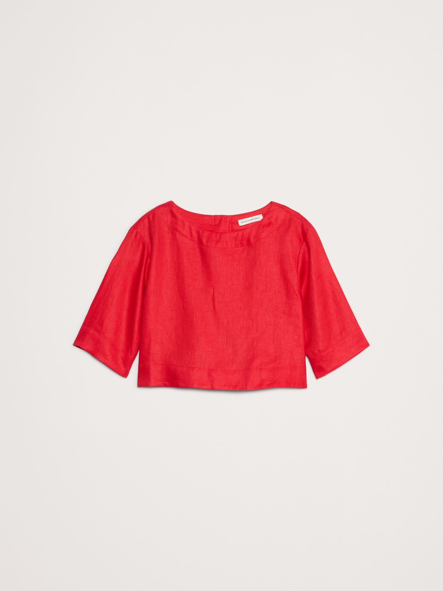 Linen Boat-Neck Cropped Top