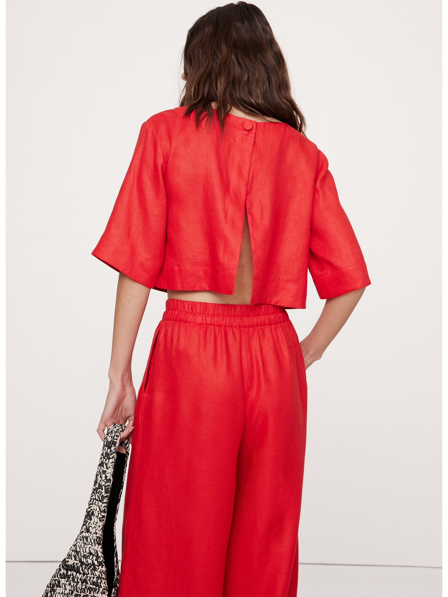 We love an easy top, in 100% certified-European linen. The almost-open back and cropped length of this one means it pairs easily with linen skirts, linen shorts, linen pants…all linen, all day.