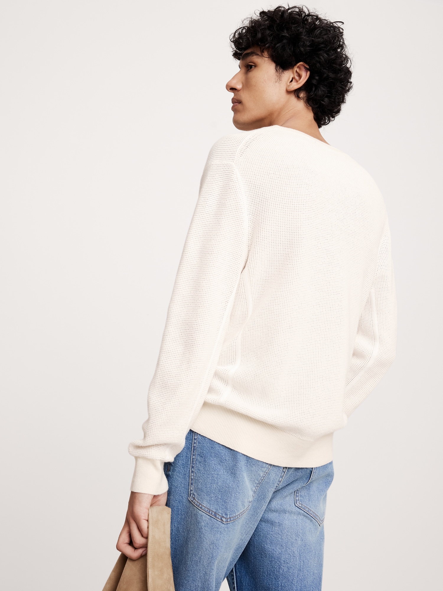 A great year-round sweater in a timeless waffle-knit texture, this crew-neck sweater is made from breathable linen and cotton.