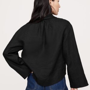 An easy popover top, in 100% certified-European linen. We added wide sleeves and a split neck with a single button.