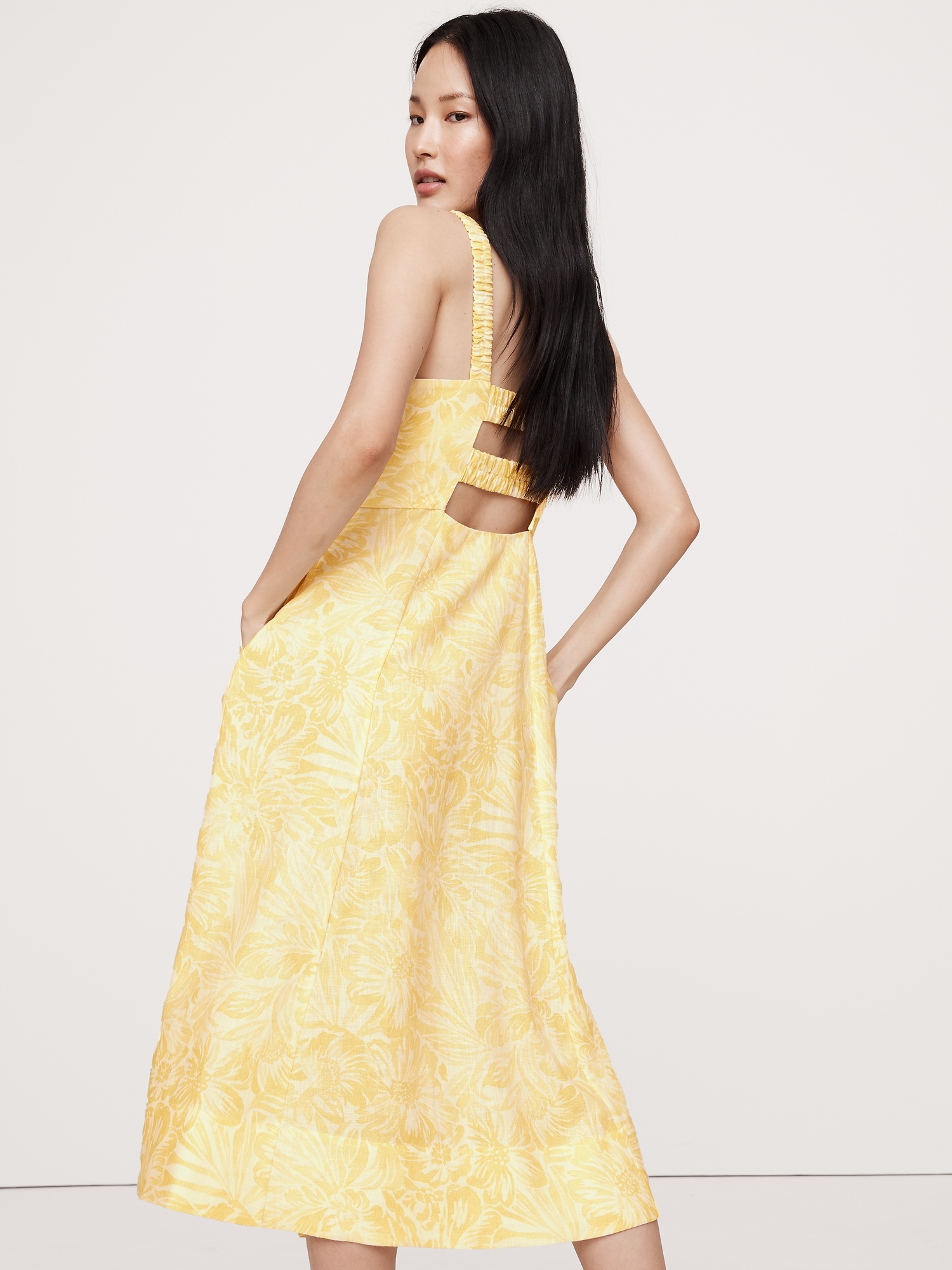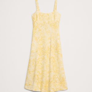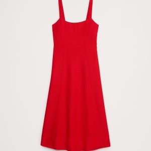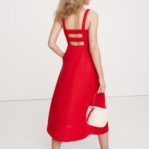 Linen Square-Neck Midi Dress