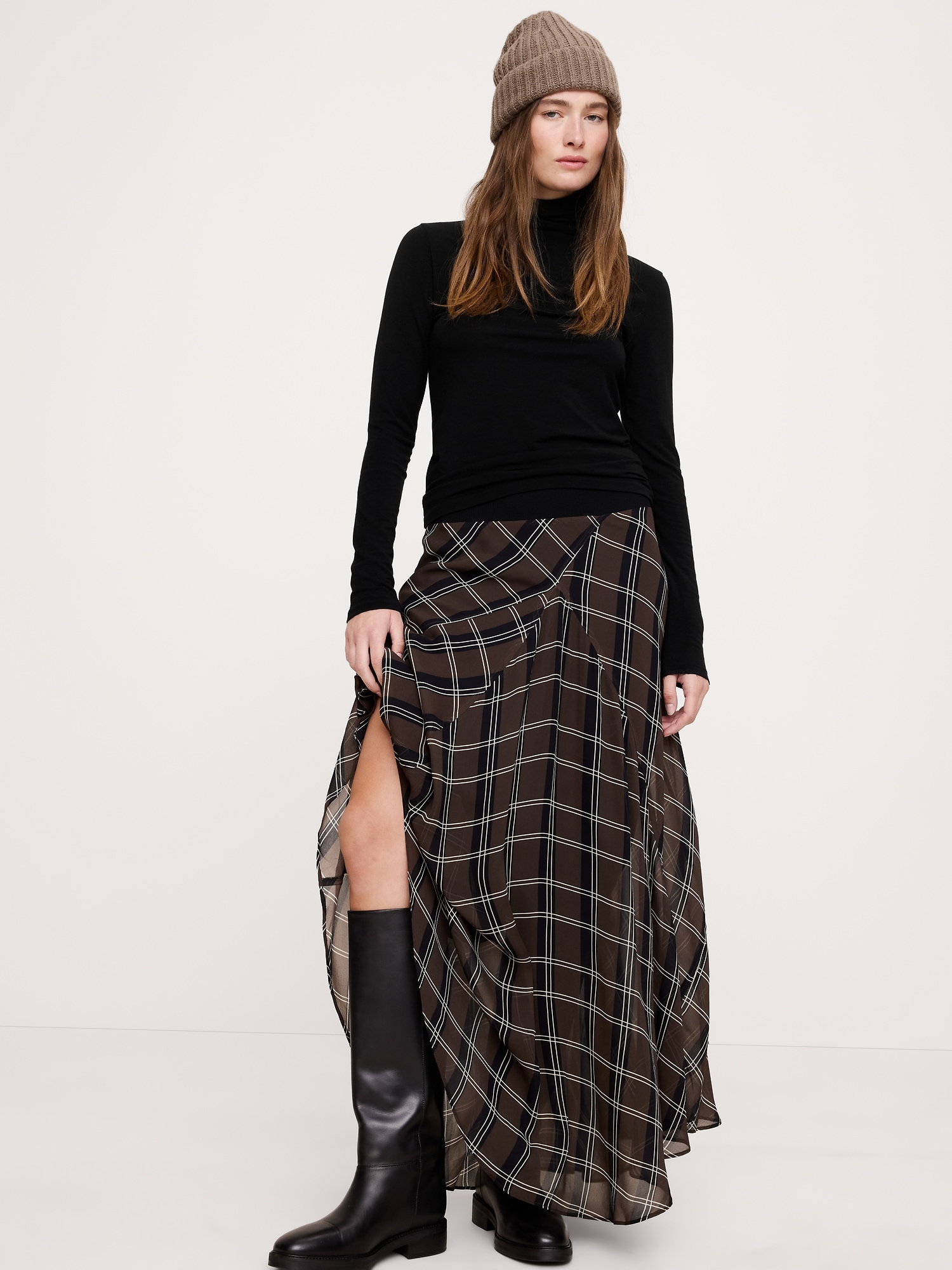 So good, we had to bring it back. This turtleneck top is made from a luxuriously soft wool-blend jersey, in a weight that’s suitable for layering through cooler weather.