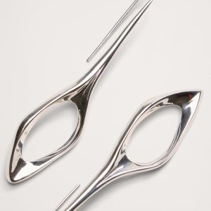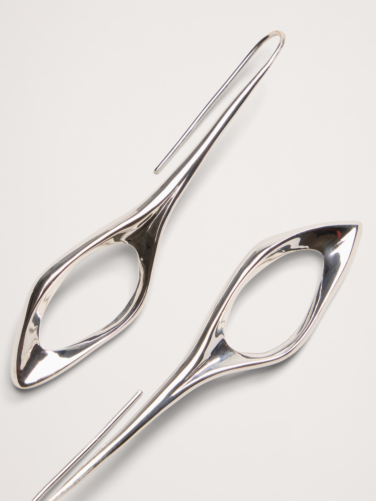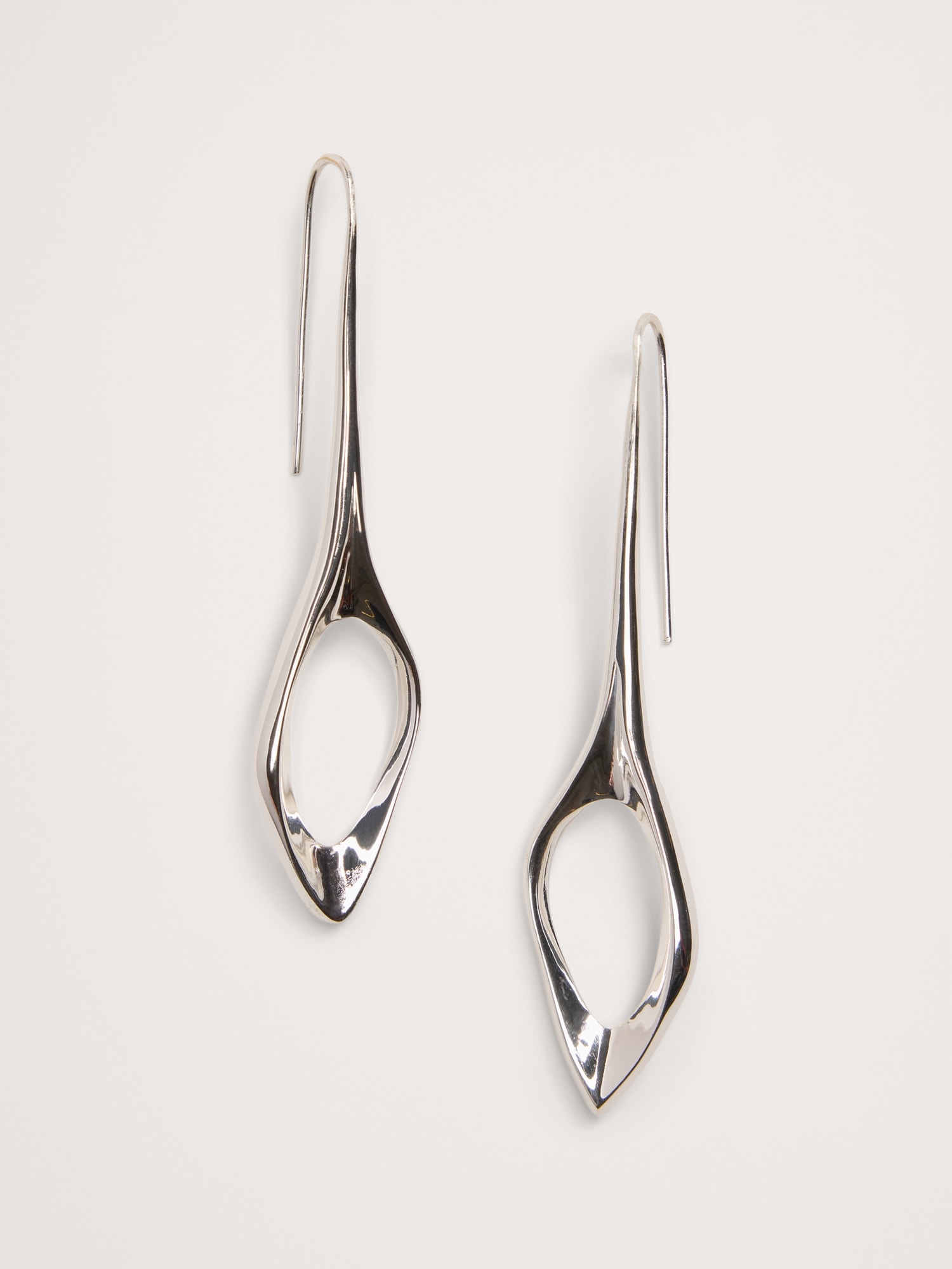 Enchanting silver-plated earrings with an airy sculptural design dangle from elongated ear wires.