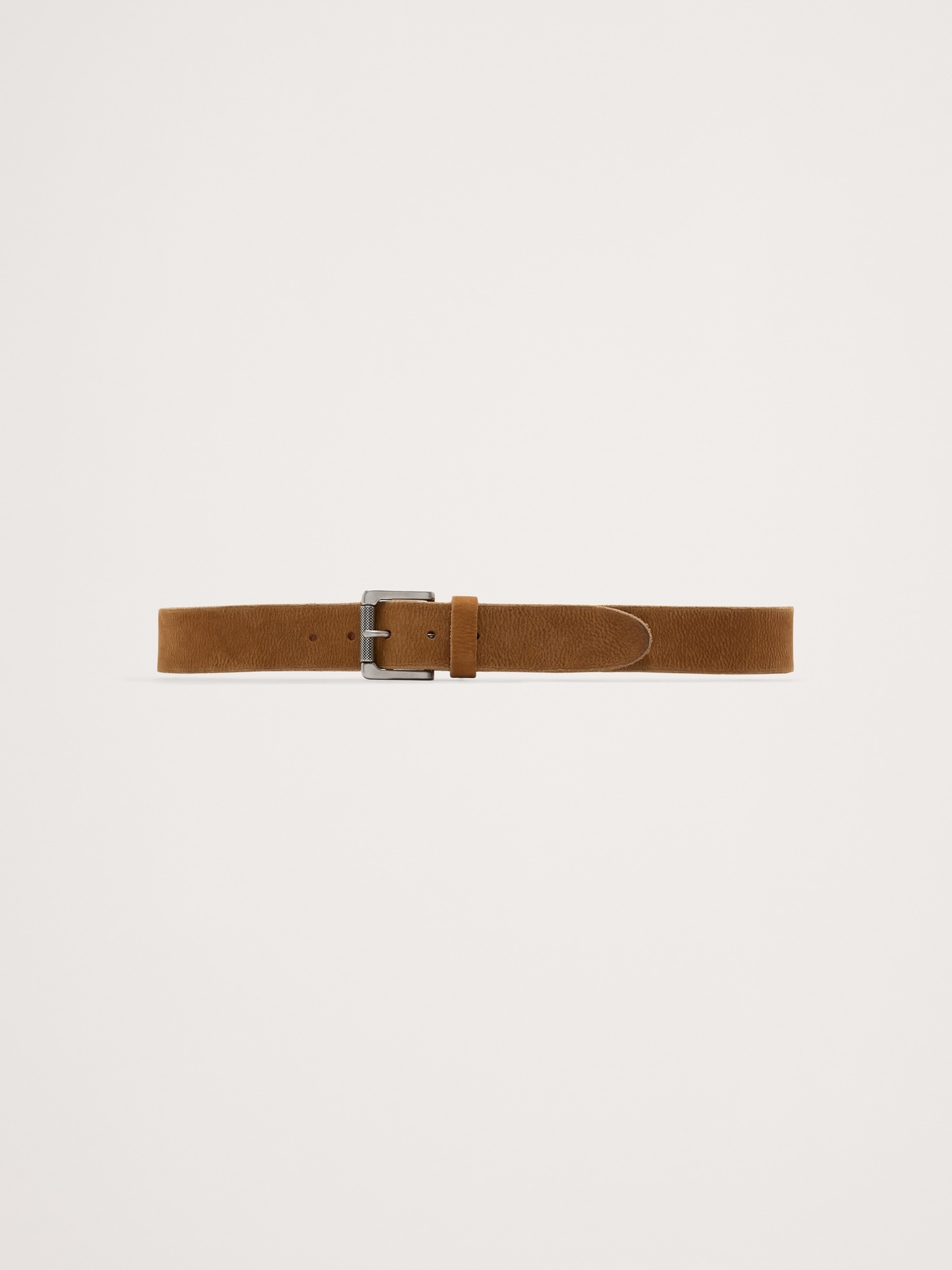 A belt with character, this gorgeous Italian nubuck leather belt has a sturdy, suede-like finish.