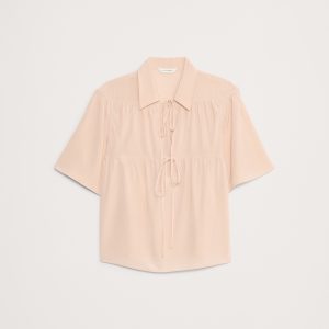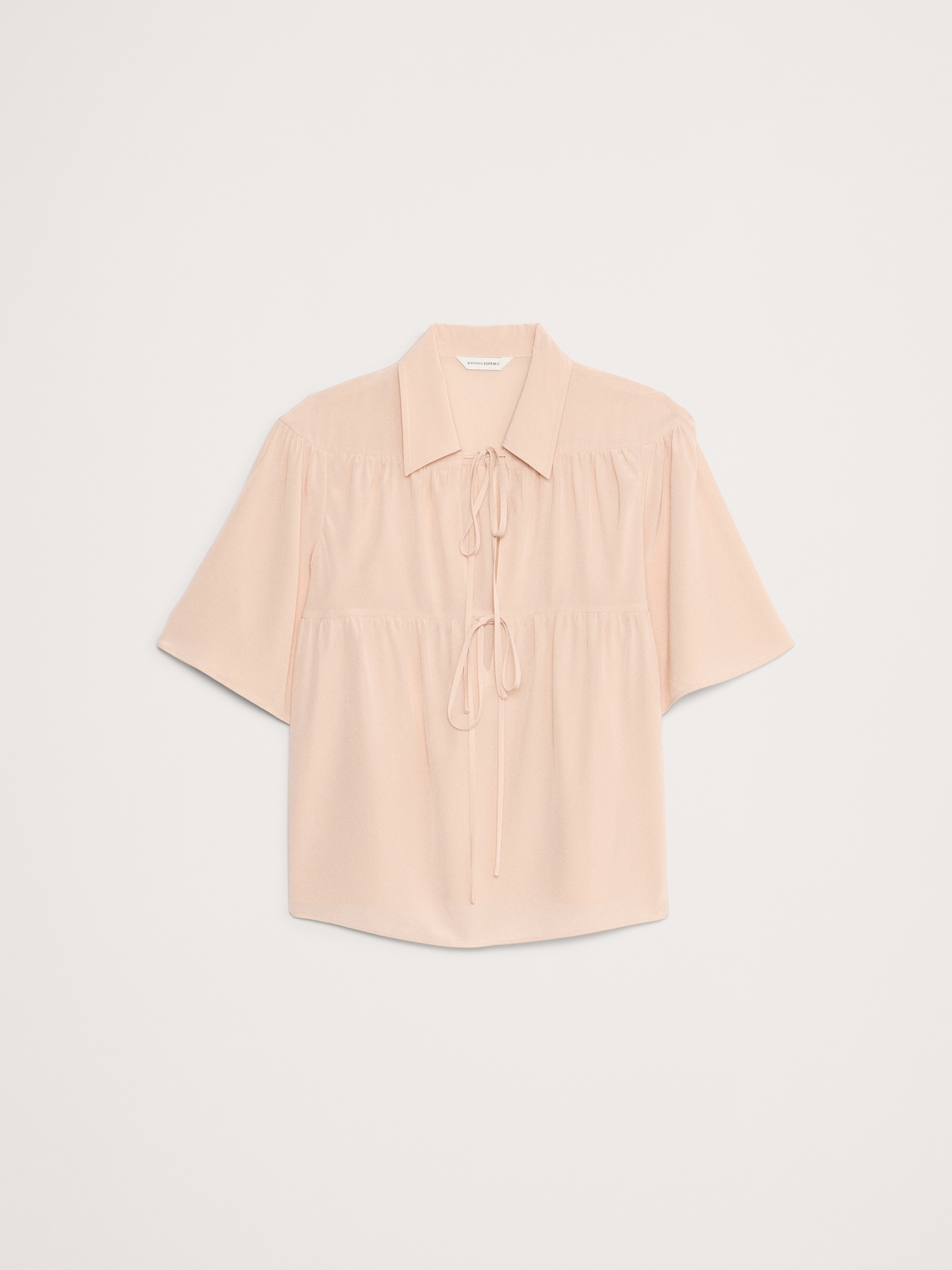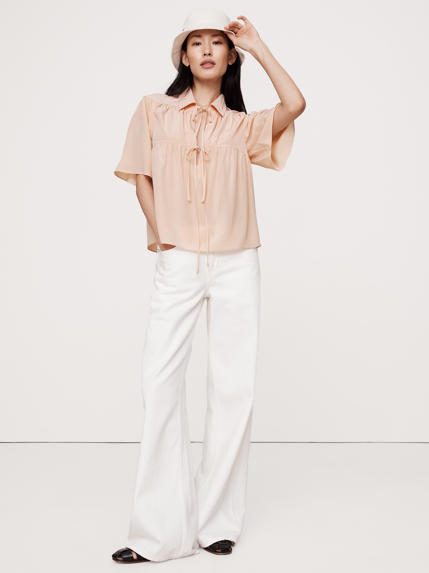 Cut from our signature silk de chinethis tie-front top feels effortless but looks more dressed-up thanks to its tiered construction. Did we mention it’s also machine washable?