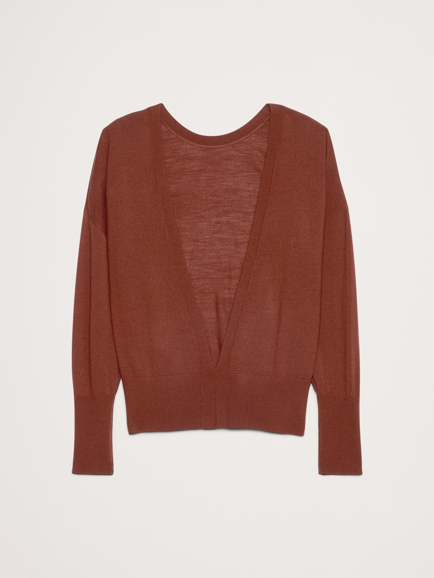 Looks good, feels good. A backless, boatneck sweater, crafted in beautifully warm and soft Merino wool, produced according to the NATIVA™ Regenerative Wool protocol.