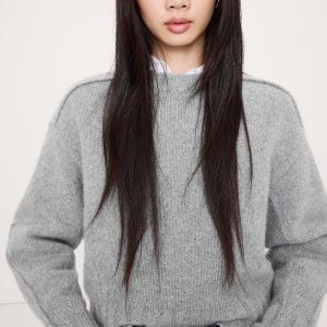 A layer to carry you through cooler seasons to come, we designed this cute crew-neck sweater with ribbed panels for a utility twist. Crafted in a warm and luxuriously soft blend of Merino wool and cashmere.