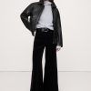 Wide leg fit: Mid-rise with a straight fit through the thigh and wide leg. Full length.