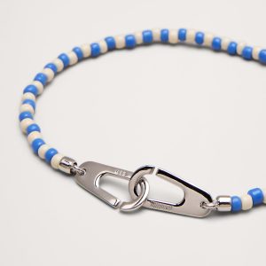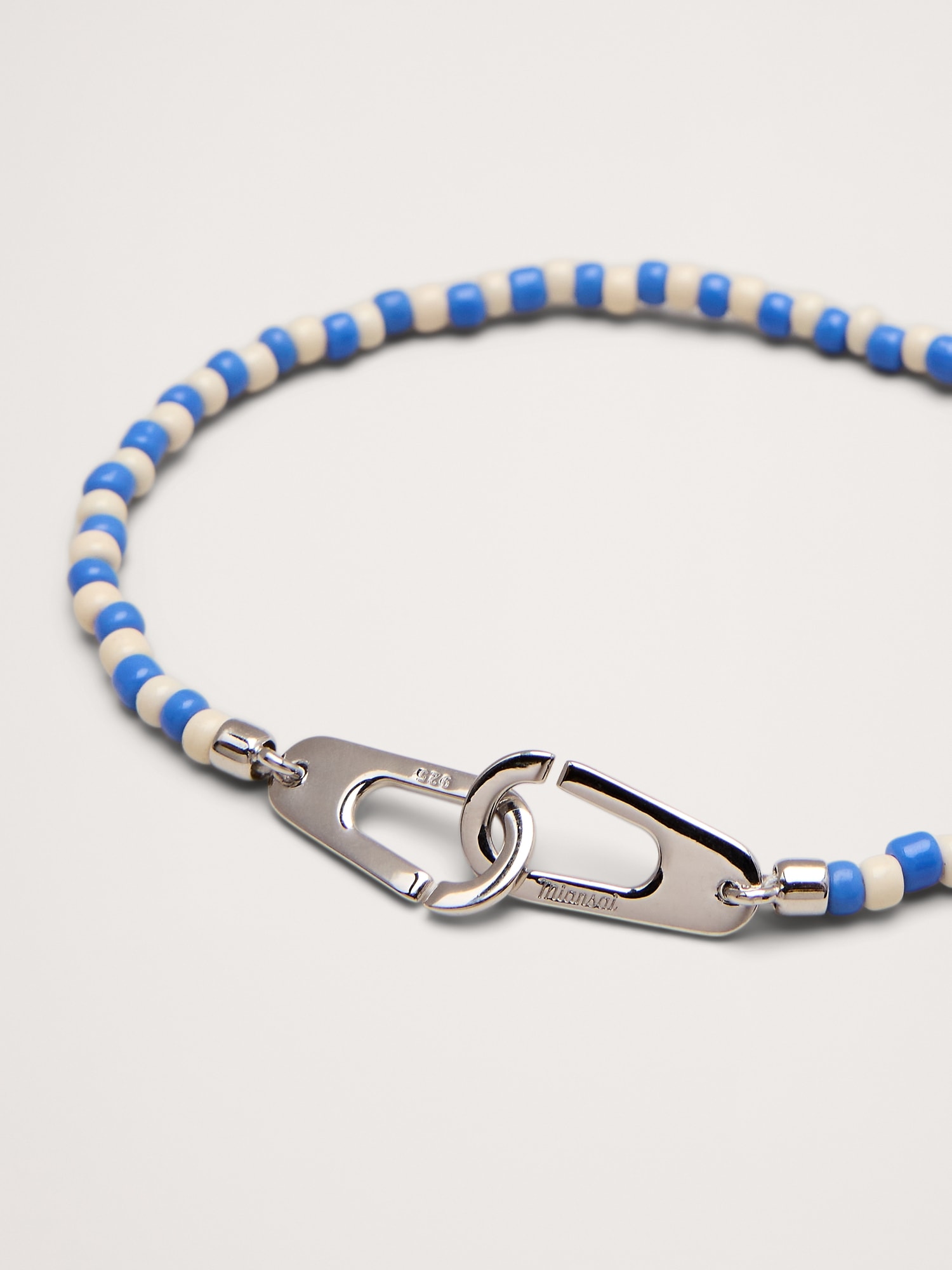 A beautiful mix of Miansai’s signature sterling silver carabiner hardware set against a string of Miyuki glass beads.