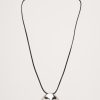 A coiled silver ring suspended from a simple, leather cord, finished in 999-silver plated brass.