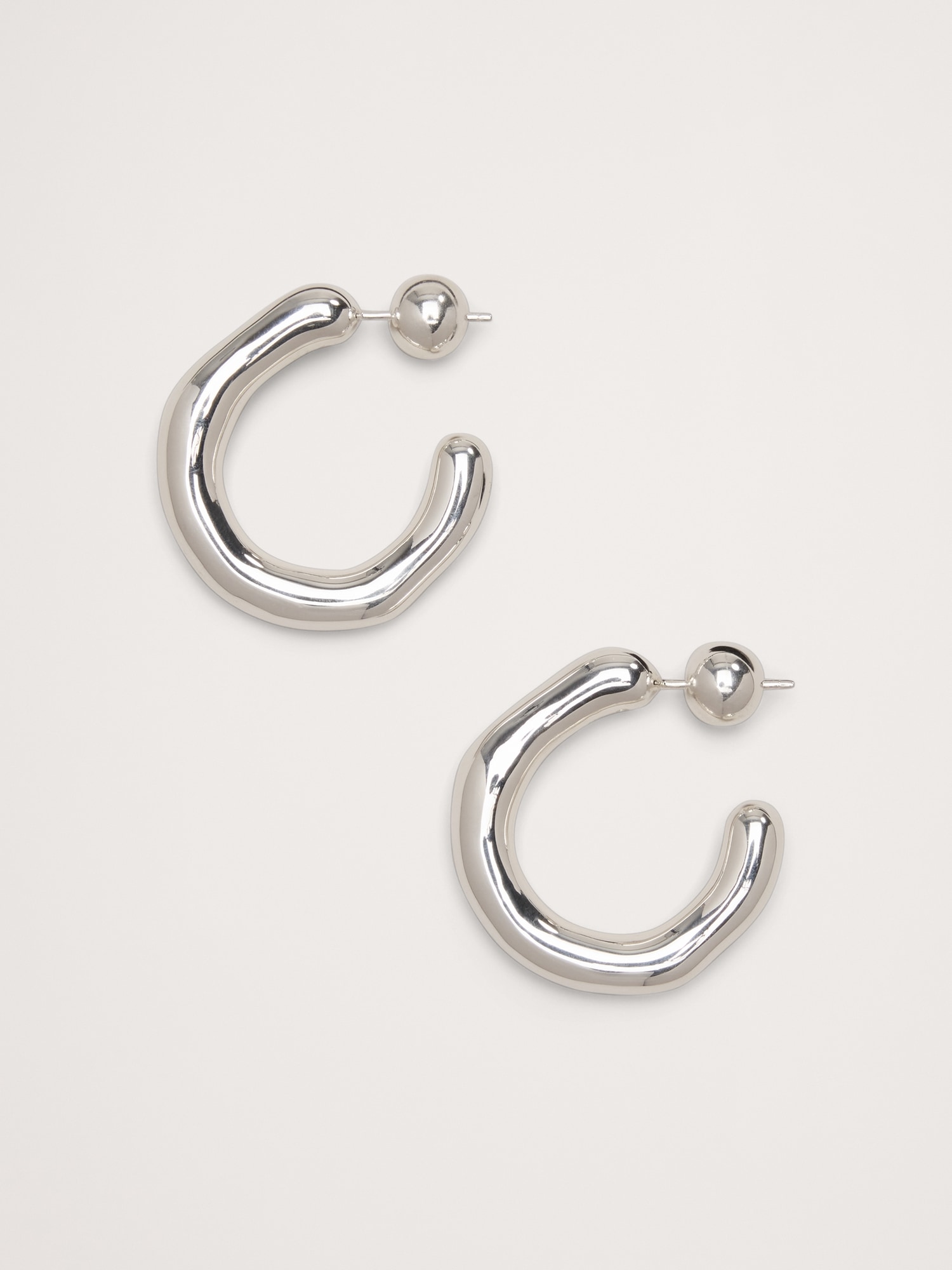 Classic dangle earrings reimagined in a double teardrop shape so they can be worn facing forward or back. Finished in either 14k-gold or 999-silver plated brass.