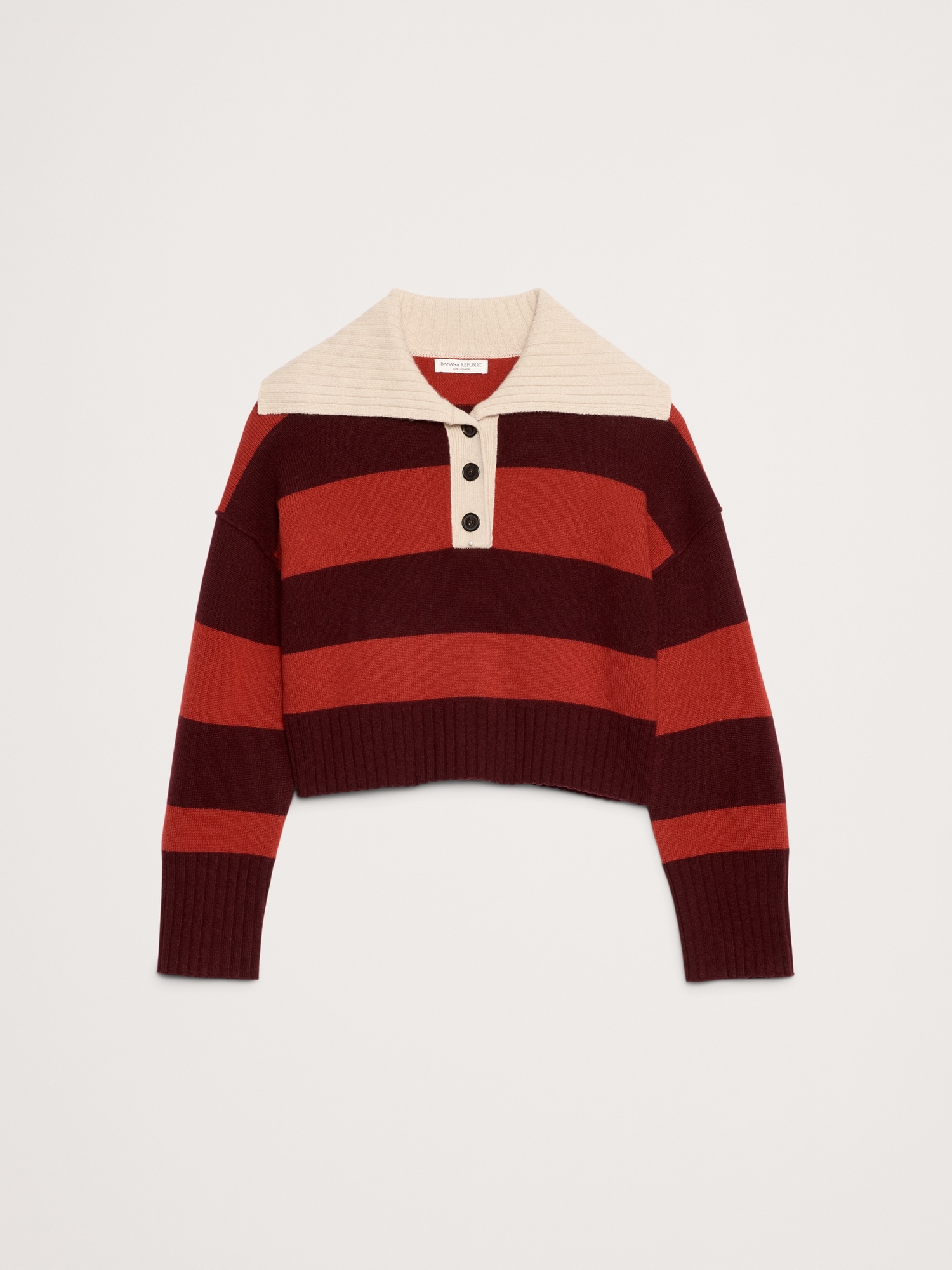 The vibe is vintage. We borrowed the athletic stand collar and button-placket detail from a vintage piece we fell hard for in the archives. To make it luxe, we selected our signature midweight cashmere yarn so it’s ideal in cooler seasons.