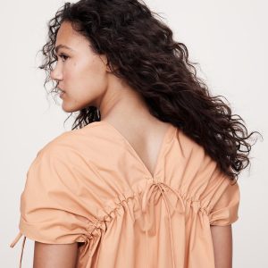 An easy cotton poplin top that’s ready for warm weather. We added drawstring accents at the shoulders and back to create a flowing, trapeze shape through the body.