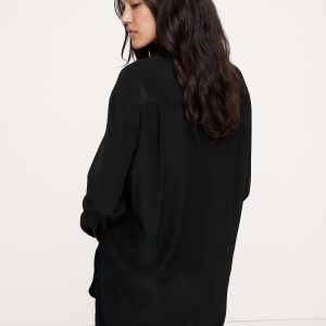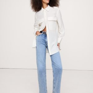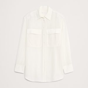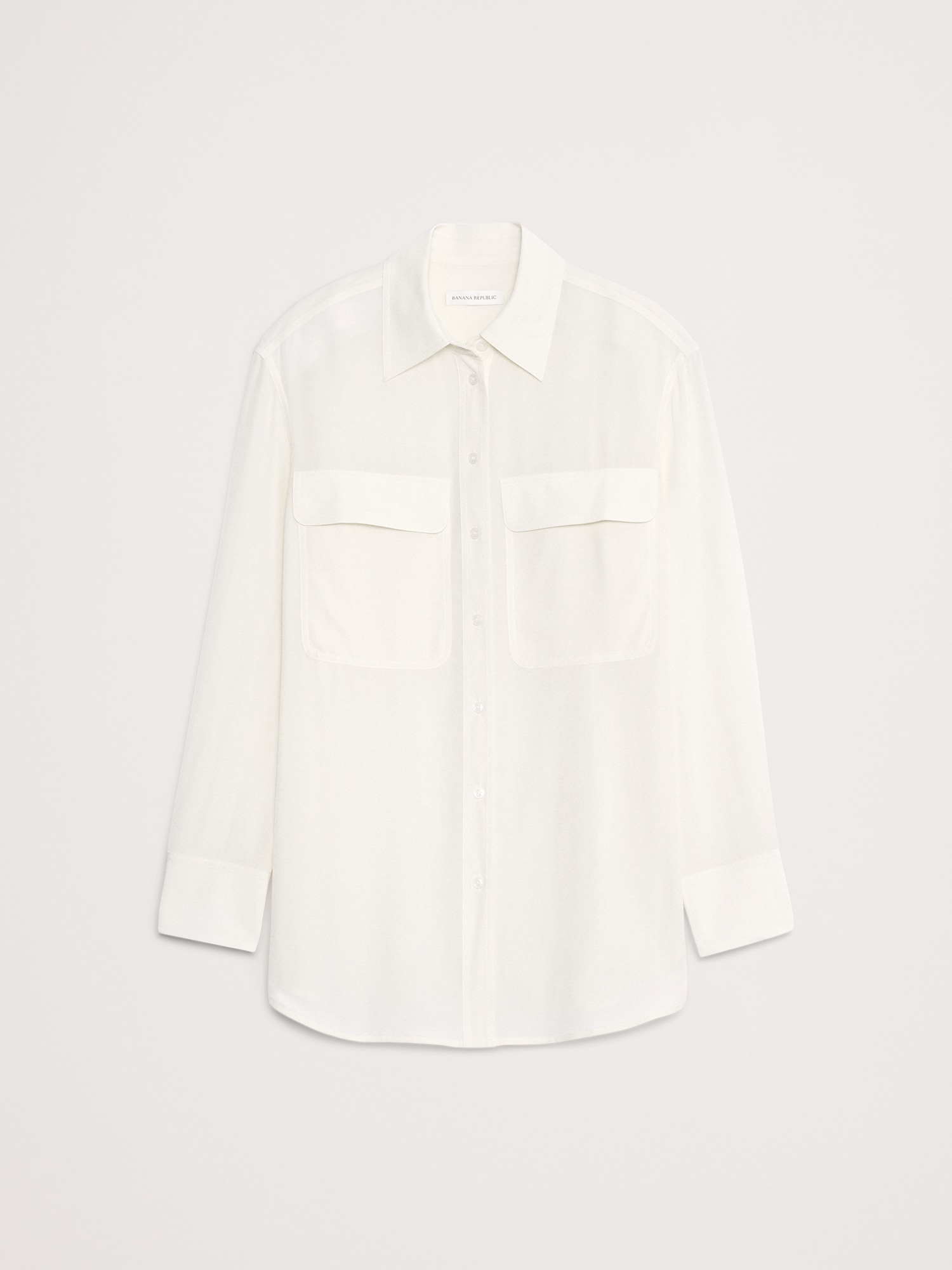 Cut from our signature silk de chinethis oversized shirt has chest pockets for a utility twist on the classic button-down shirt. Did we mention it’s also machine-washable? Oversized fit: Extra room through chest, shoulders, and waist. Dropped shoulder seams. Point collar with button front. Chest pockets. Shirttail hem. #826045