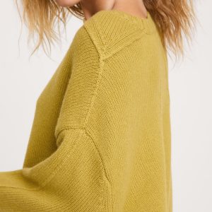 We used a paneled construction to put a spin on the classic, crew-neck sweater. Cut here in an oversized silhouette from a soft and warm Merino wool and cotton yarn.