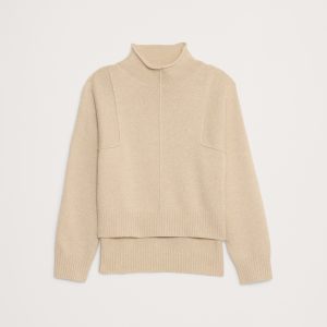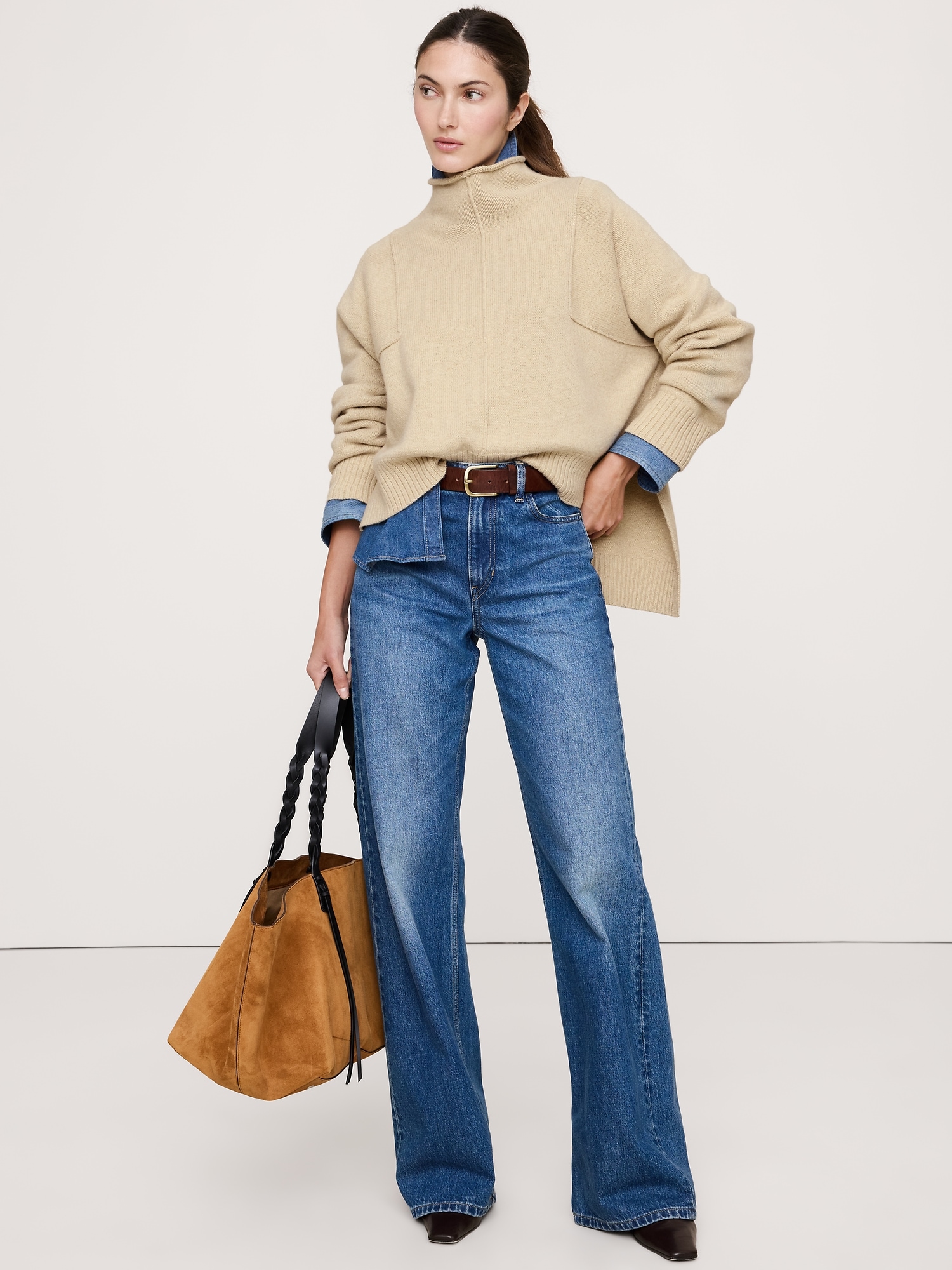 Oversized Merino-Cotton High-Low Funnel-Neck Sweater