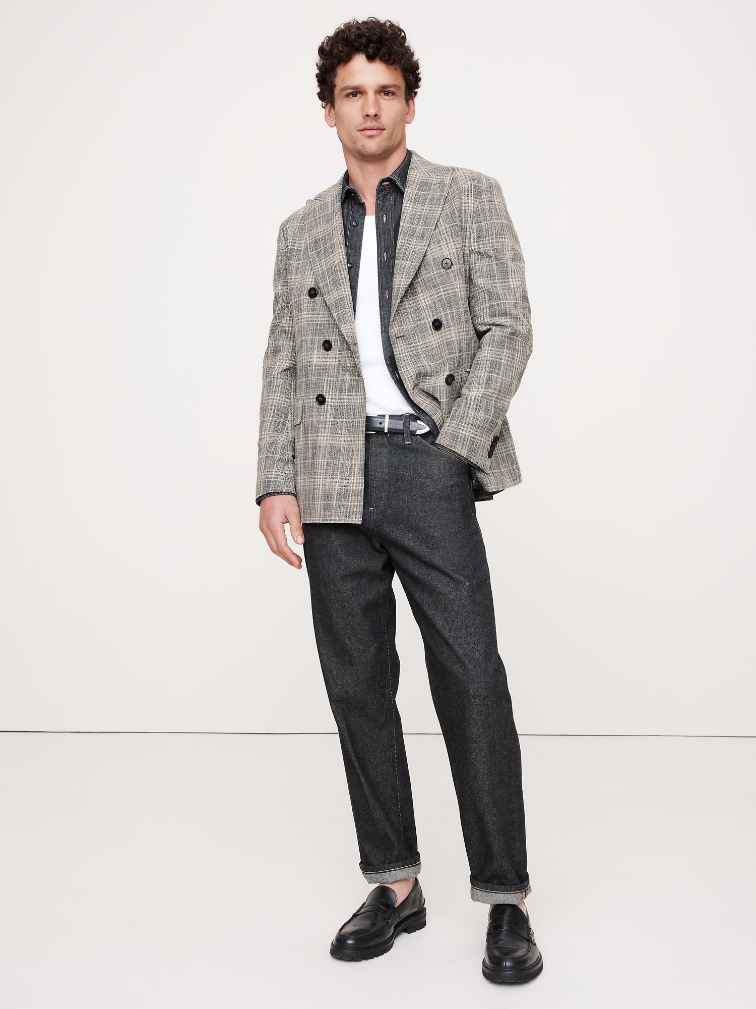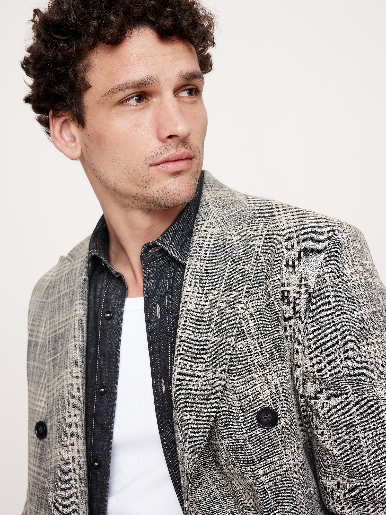 This double-breasted version of our signature Sport Coat is cut with a peak lapel for a more dressed-up look. We cut it in a handsome tweed fabric we love for its speckled appearance and timeless Prince of Wales plaid pattern—which makes it easy to pair with dress pants or denim.