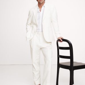 Designed with warm climates in mind, this pleated suit pant is cut from a blend of linen, cotton, and viscose—seen here in a soft white. Wear it with the matching suit jacket—hello, wedding season.
