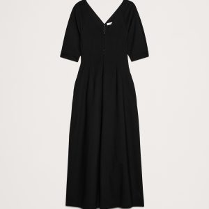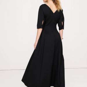 We designed this tailored maxi dress with darts at the waist and hook-and-eye closure at the front for a corset-inspired look. This one is made in one of our favorite ponte knits (so it’s super soft). Fit Flare: Fitted bust and waist with a flare skirt. V-neck with hook-and-eye closure. Zip at back. Side seam and back pockets. #827170