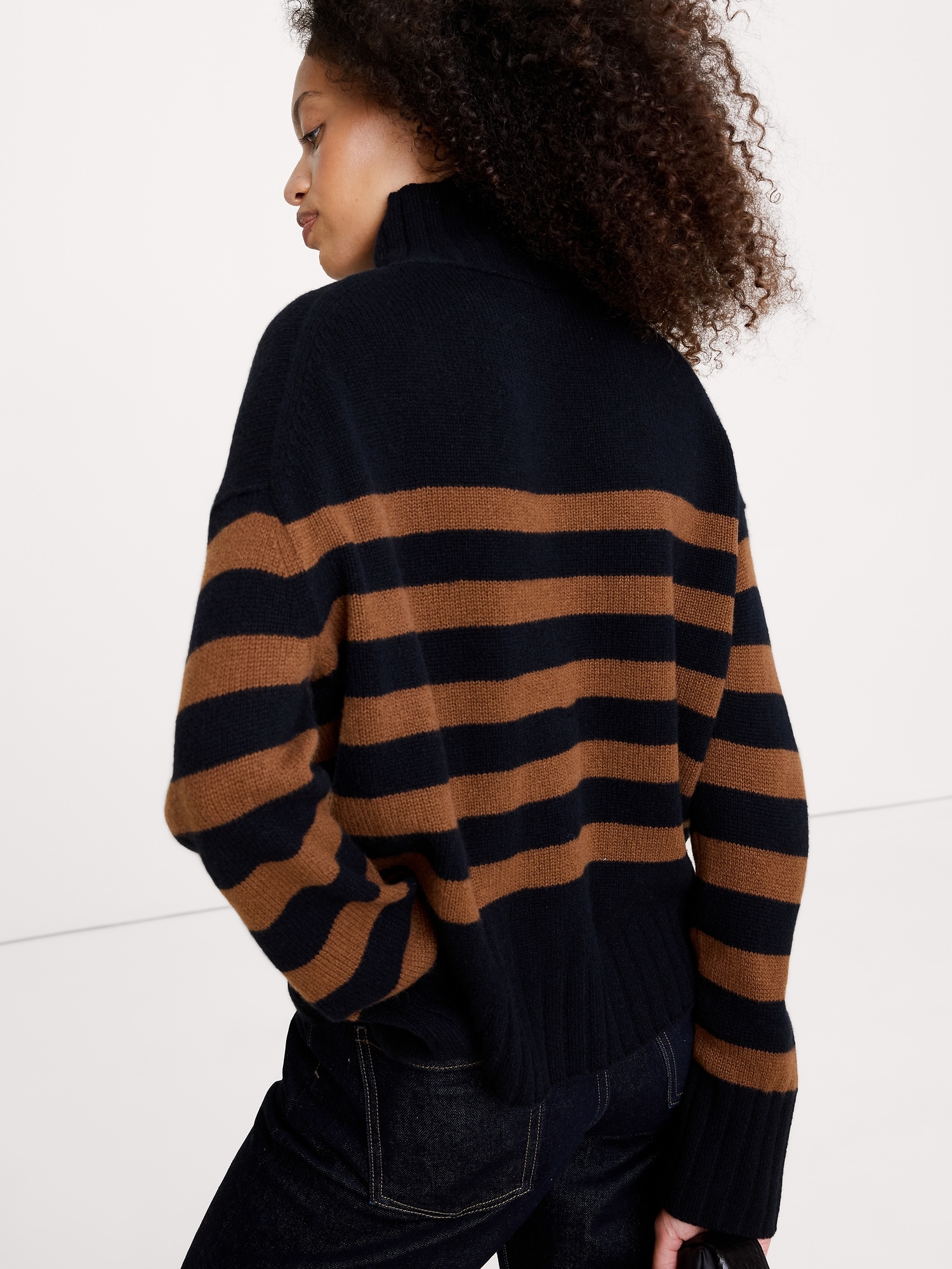 The ideal Big Comfy Cashmere Sweater, we cut this one from our signature cashmere—beloved for its soft texture and midweight warmth. We kept the fit relaxed and added a funnel-neck—similar to a turtleneck, but without the foldover so it’s sleek and easy to layer.