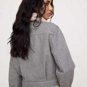 We love the look of old-school chore coats, which is what inspired us here. We updated the look with a removable faux-fur collar and a cropped length for easy layering.