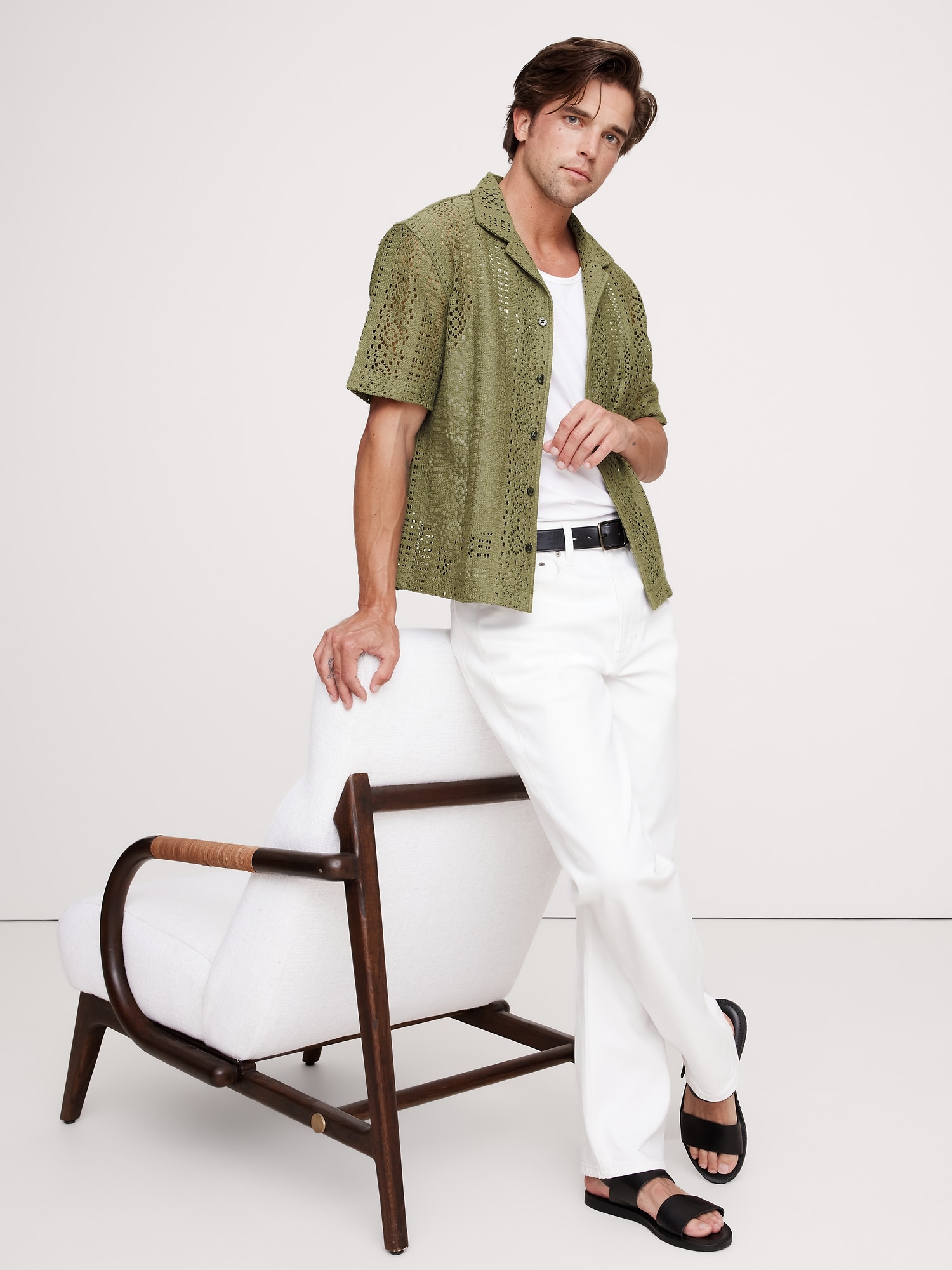 Relaxed-Fit Crochet Resort Shirt