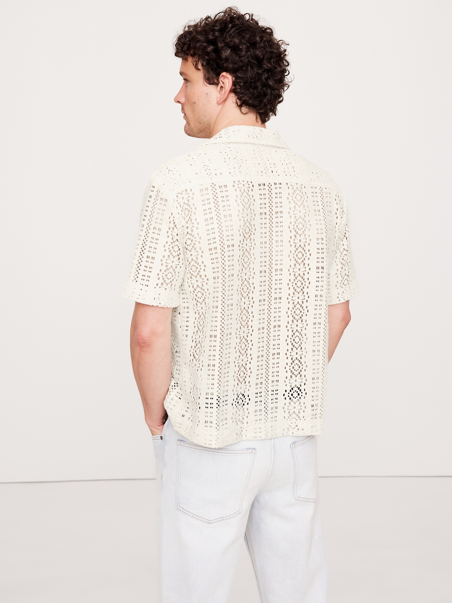 Relaxed-Fit Crochet Resort Shirt