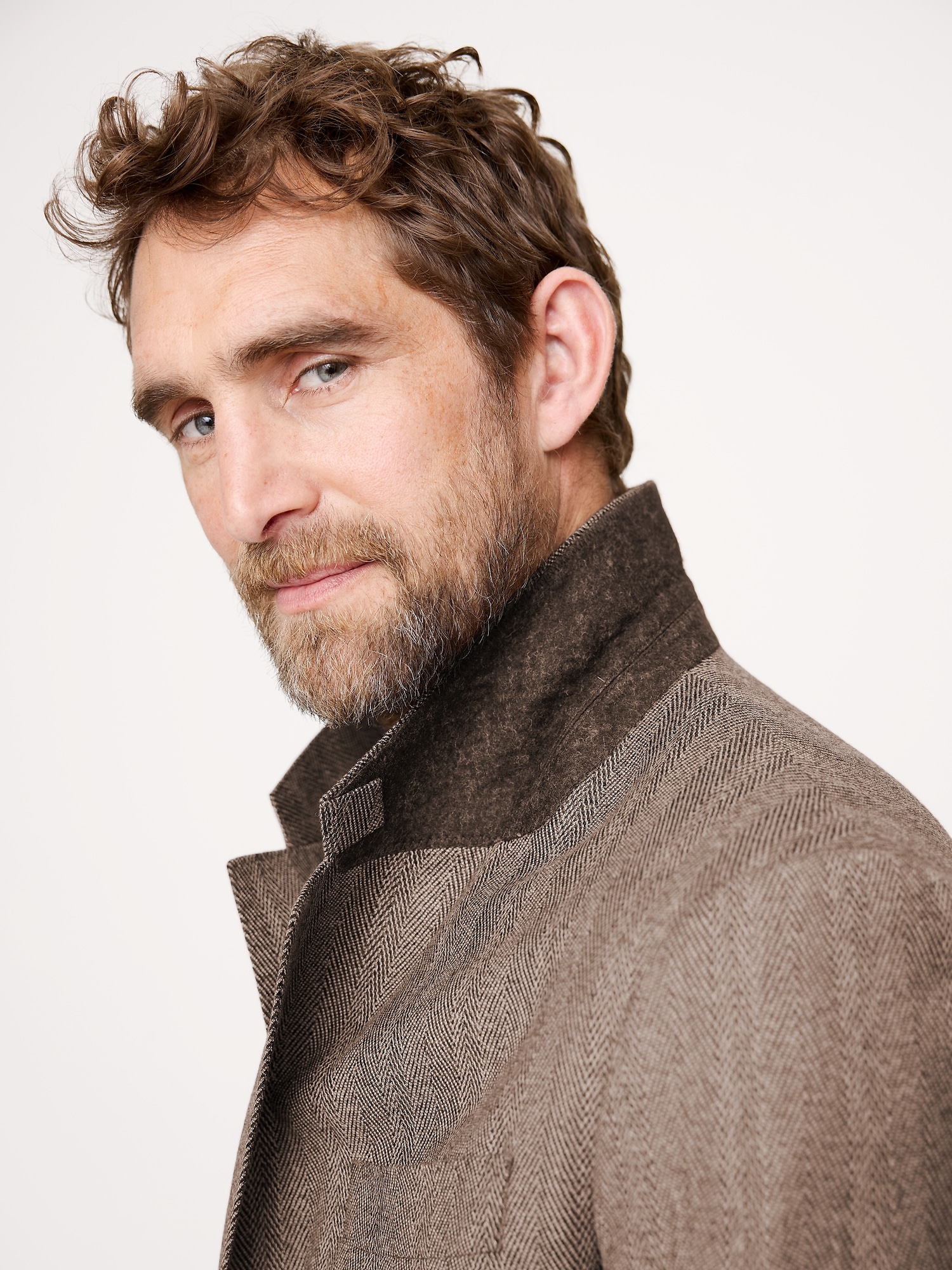 Designed with cooler climates in mind, this sleek suit jacket is cut from an Italian herringbone fabric woven from 100% wool.