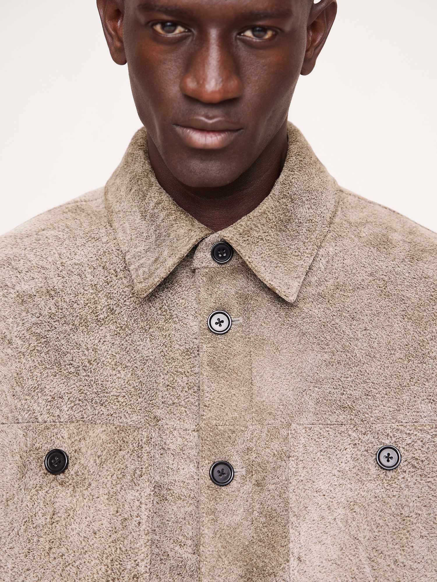 Relaxed Textured Suede Shirt Jacket