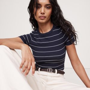 Our take on the baby-tee, cut from a soft and oh-so-stretchy ribbed knit.