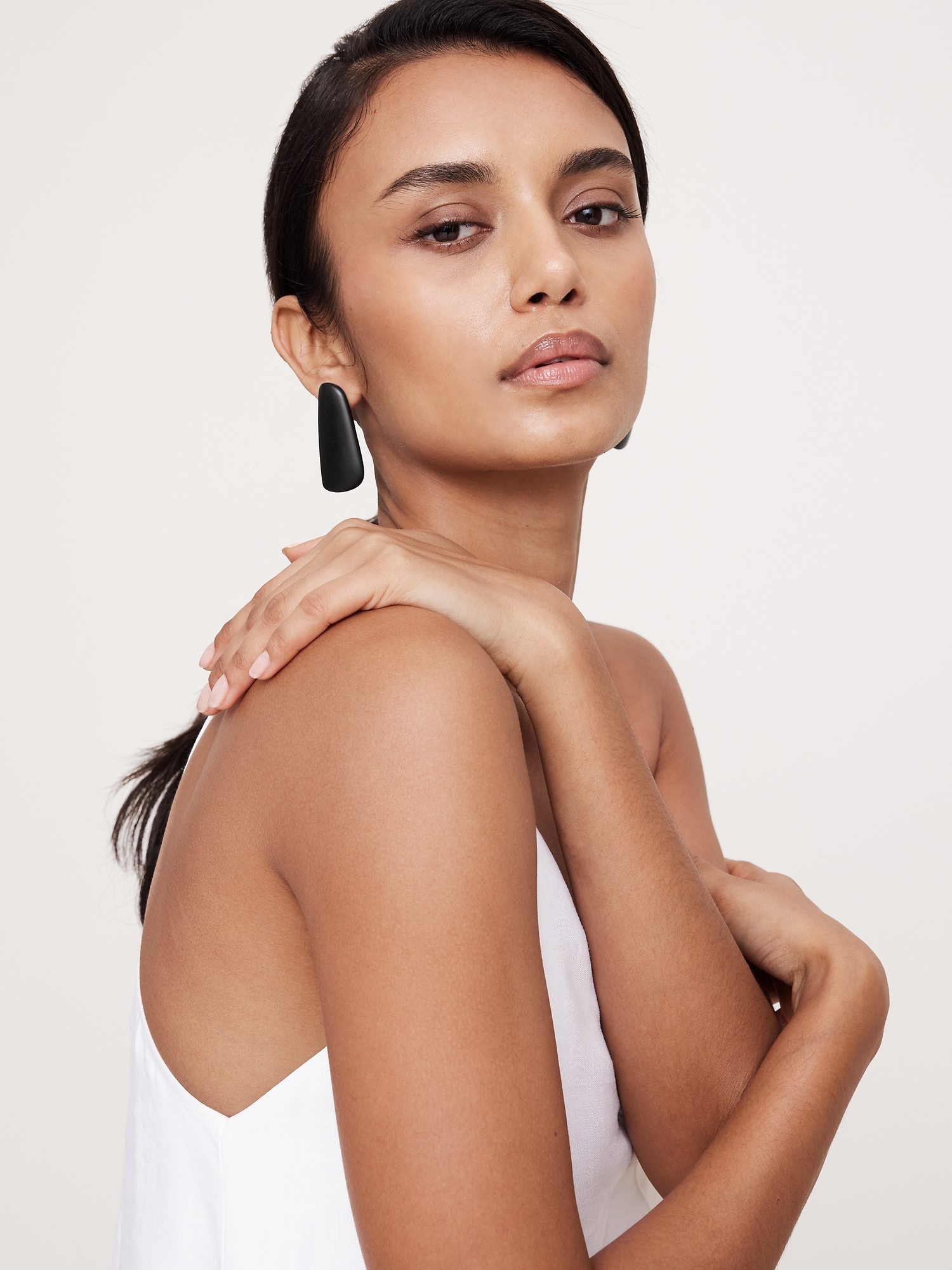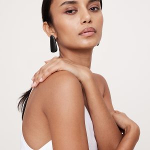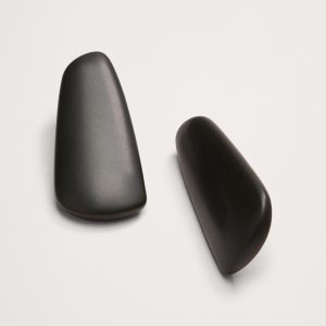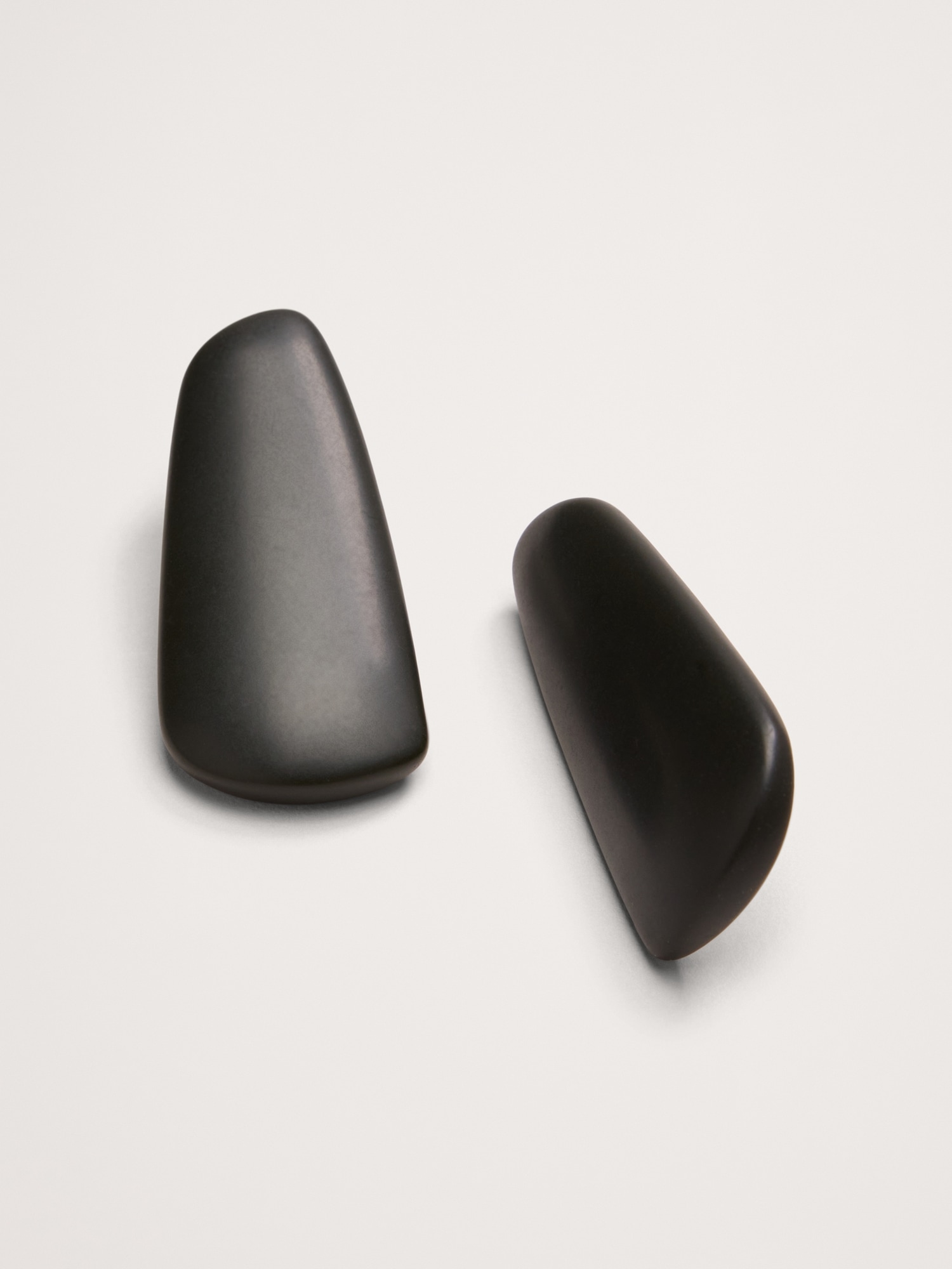 Modern earrings are made of smoothly polished resin in long oblique shapes.