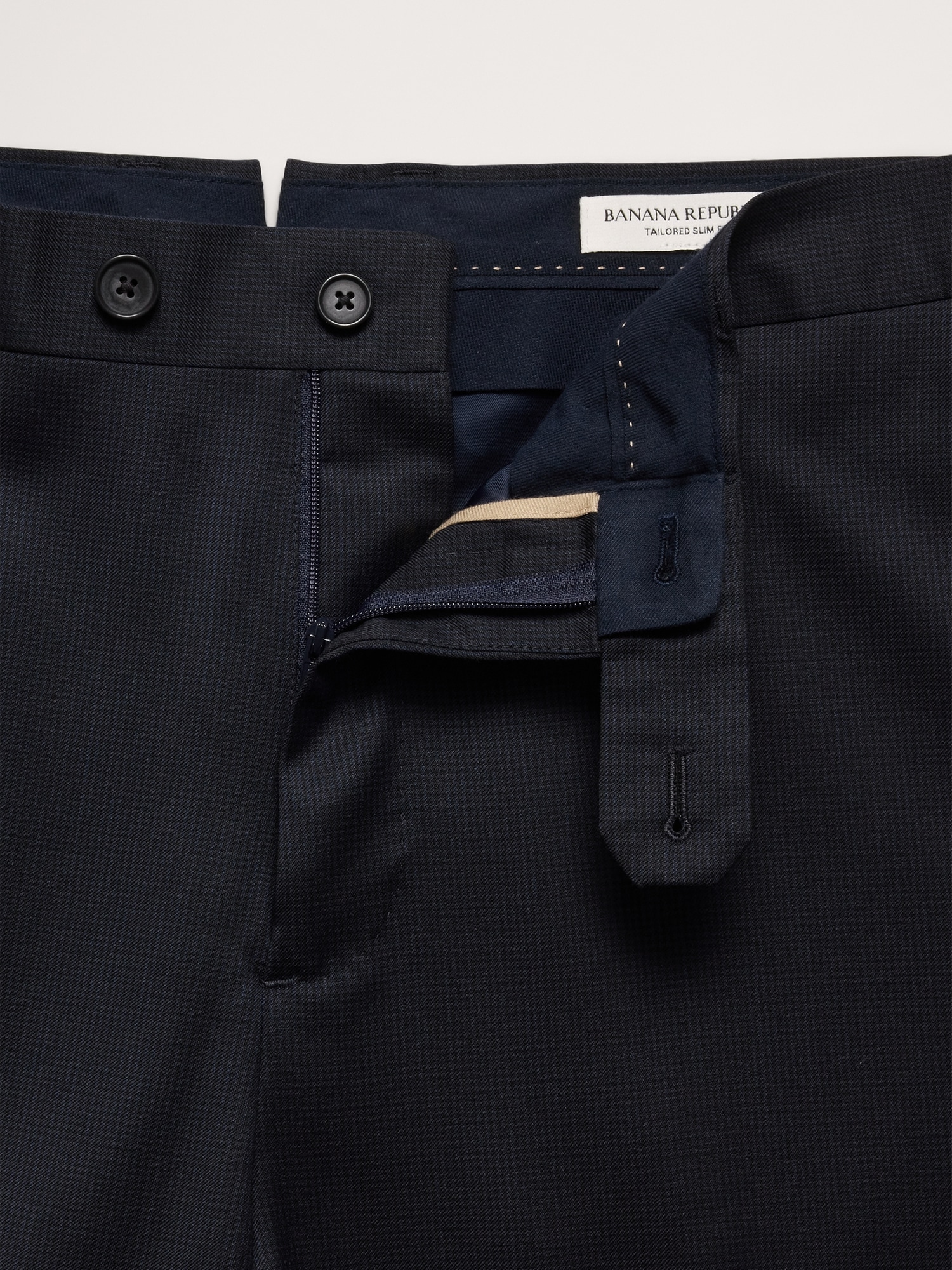 Tailored Slim Fit: Mid-rise. Tapered slim leg.