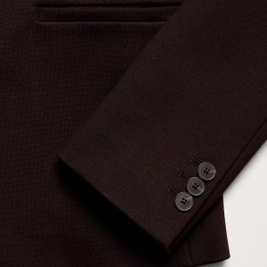 Notch lapel with 2-button front closure.
