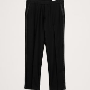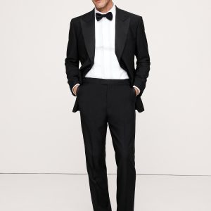A tuxedo as special as the occasions it’ll see. Note: the Italian wool barathea fabric, the silk faille tuxedo stripe at the sides, and the crisp trouser crease (so they formal).