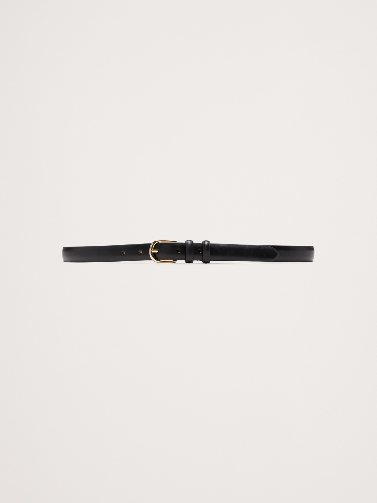 Grounded in timeless luxury, this beautiful leather belt is sturdy and luxurious with a rounded buckle.