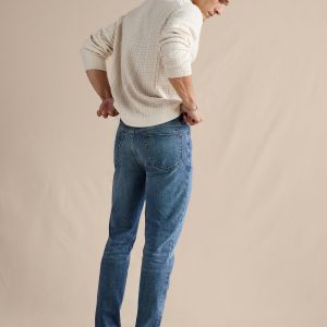 Our Luxe Traveler Jean has an extra-fine weave and is engineered with added stretch for comfort.