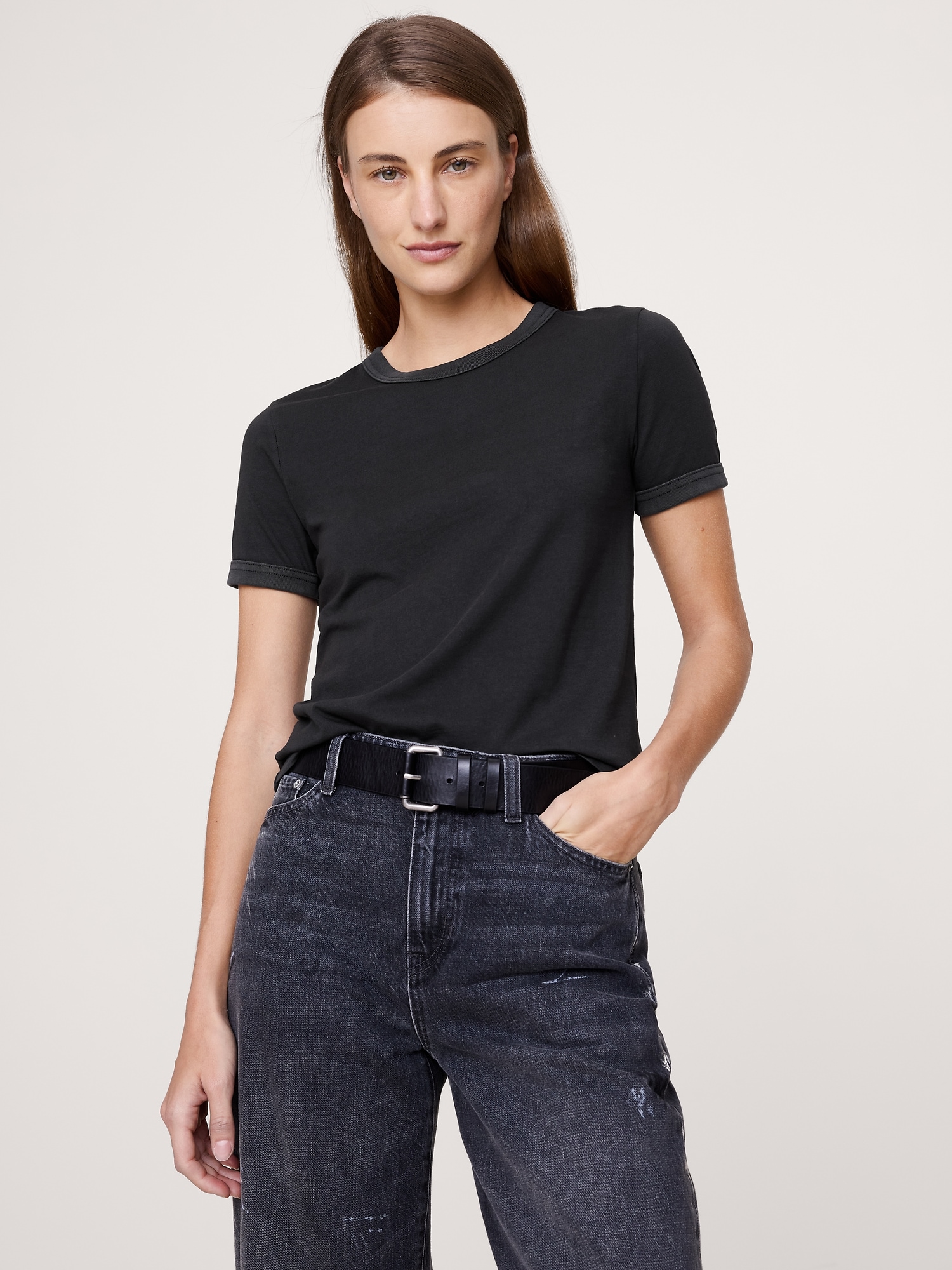 One of our best tees to date, we added ringer-tee inspired trim to the collar and cuffs for a retro feel. Crafted in a midweight cotton we love for its vintage-like softness.