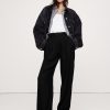 Ultra-high rise (12\”). Fitted waist and hip, relaxed through the thigh with a wide leg. Full length.