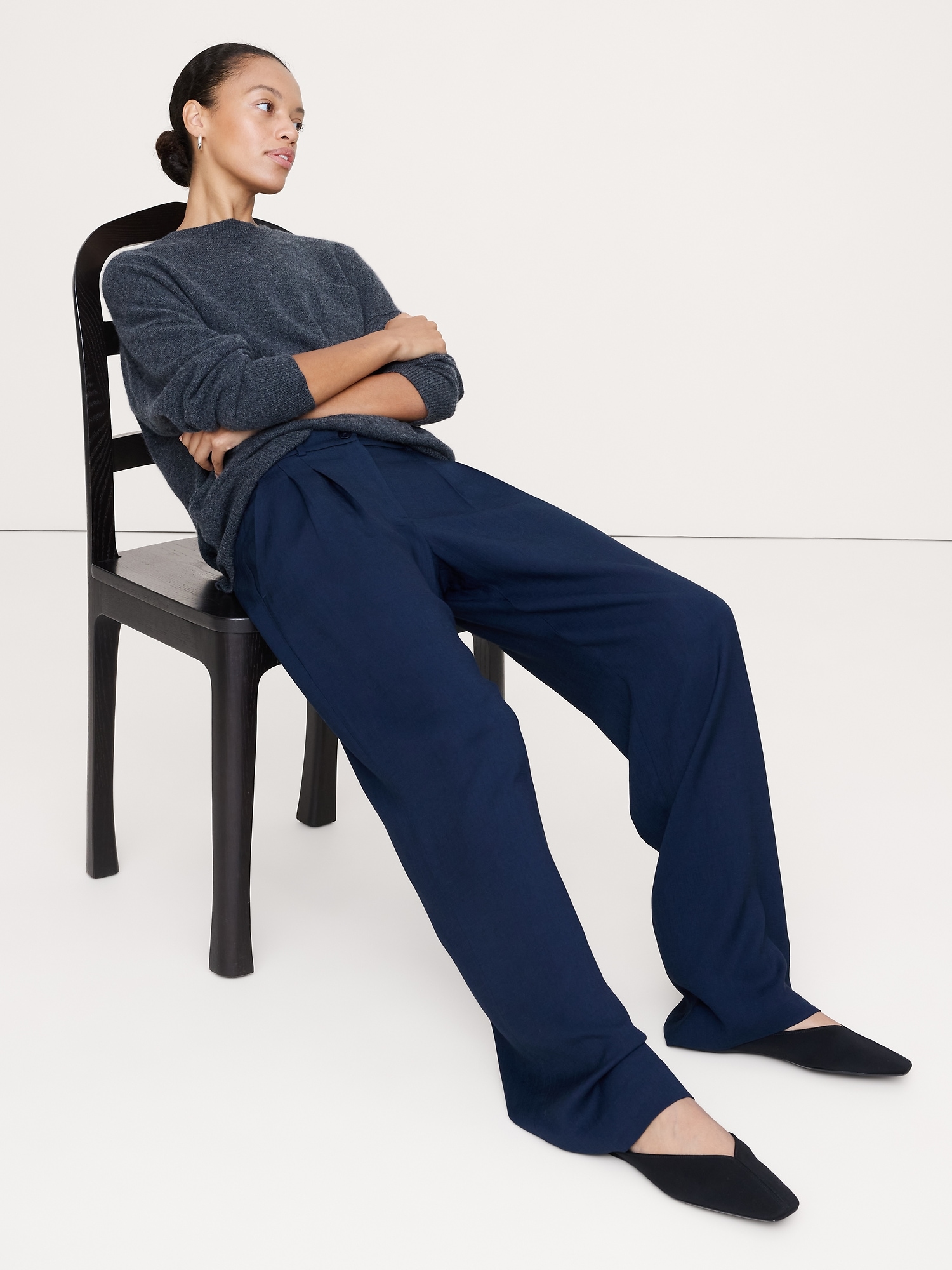 Meet the mid-rise pants we can’t stop wearing. We cut these wide-leg pants with a double-pleated in our premium drapey twill—a fabric we love because it strikes the perfect balance between tailored and casual-cool.
