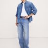 Straight Fit: Mid rise. Straight through hip and thigh. Wide leg with extra length for a break at the hem