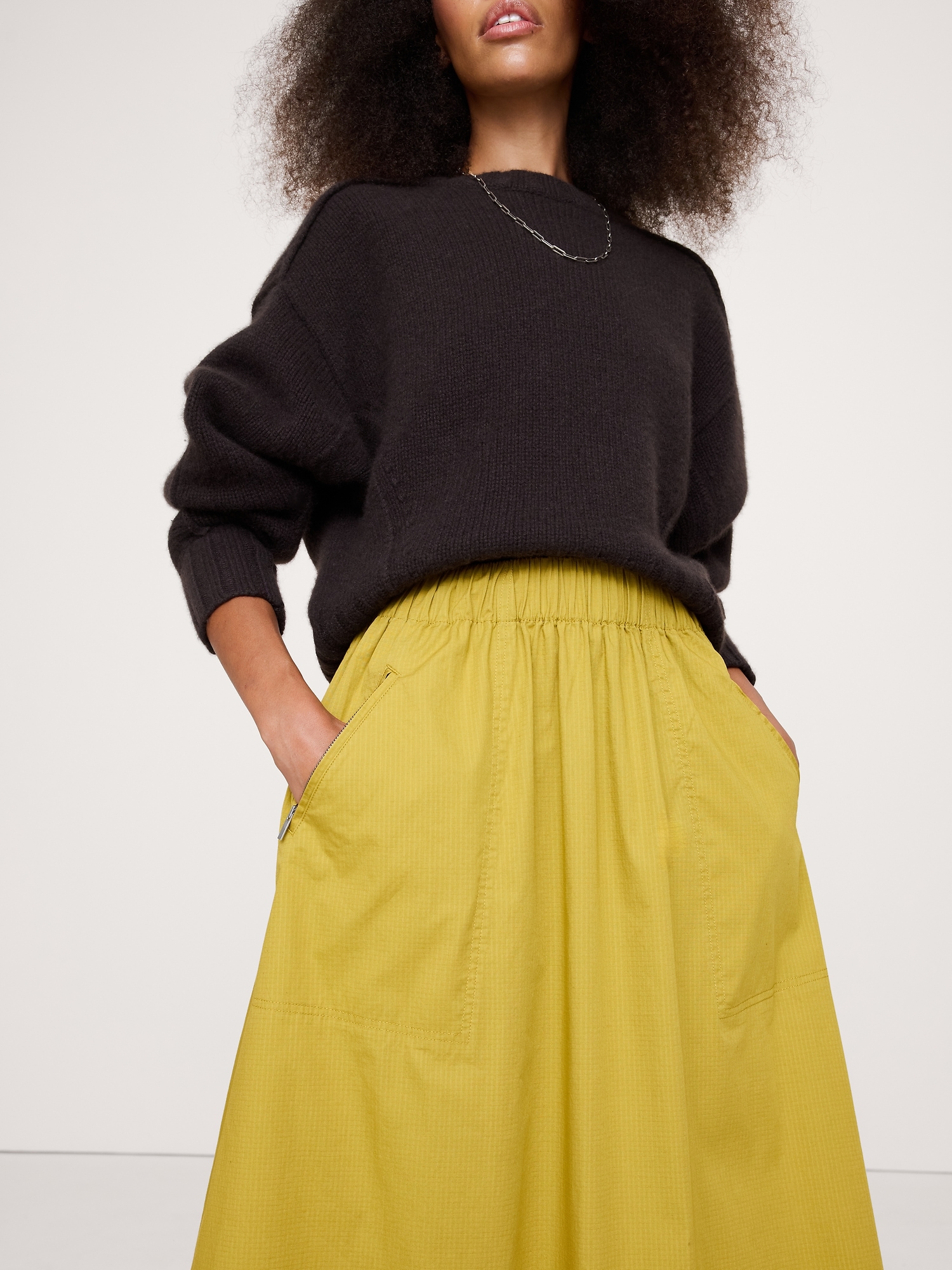 A classic A-line skirt made easy with an elastic waistband and a utilitarian twist thanks to zippered front pockets—in our stretch-cotton ripstop fabric, with its signature grid texture.