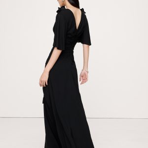 Stretch-Crepe Flutter-Sleeve Maxi Dress