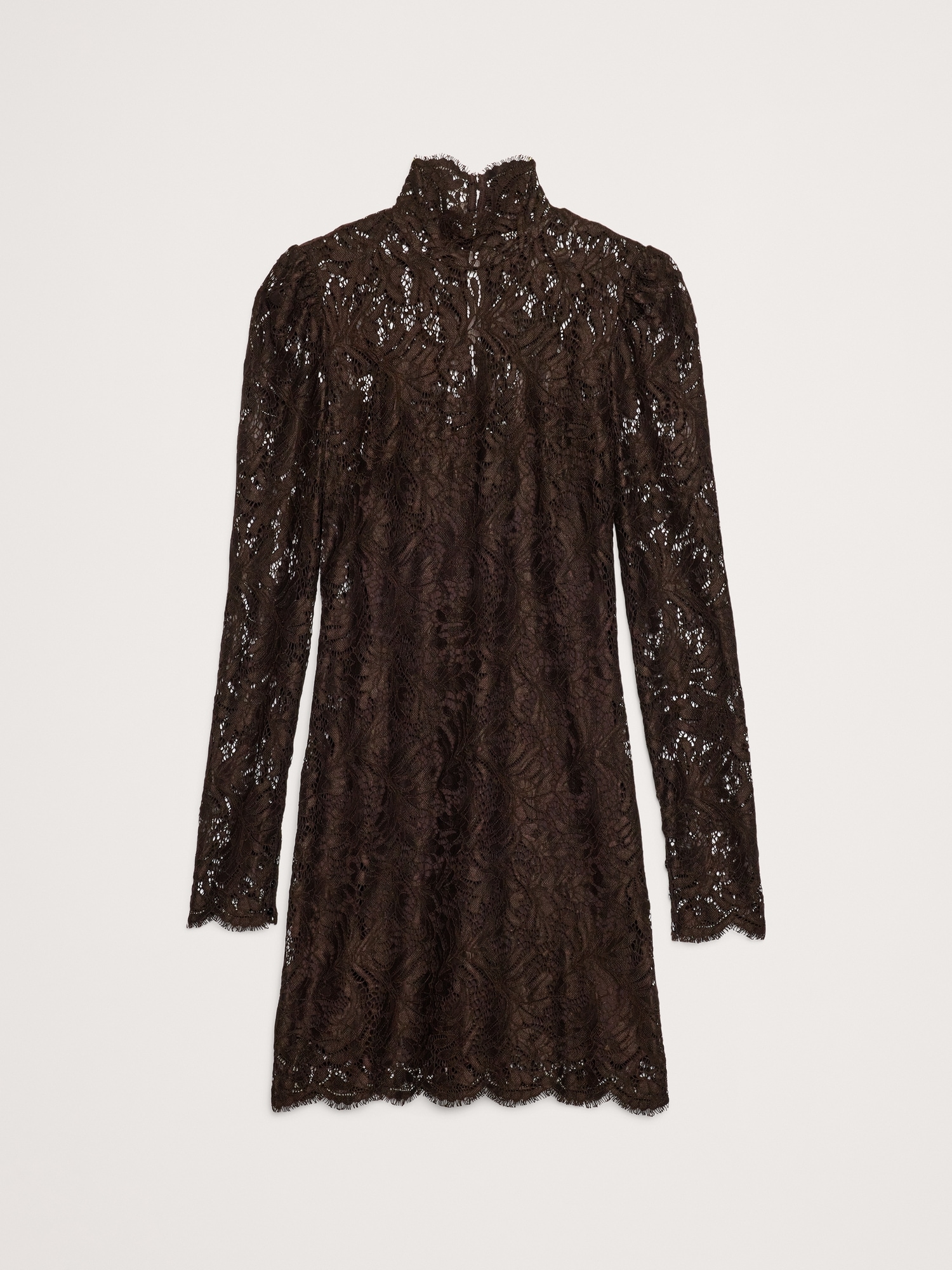 Cut from a stretchy knit lace, this dress feels as effortless as a T-shirt but looks ready for a cocktail event. Wear with the included slip or style with tights and a bodysuit.