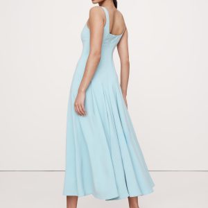 Crafted from a smooth sateen with subtle stretch, this fit-and-flare dress achieves its silhouette with an intricate paneled construction. Plus, the ankle length looks great with heels or flats.