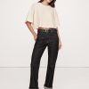 A-Line fit: High rise. Fitted waist with a flare silhouette.