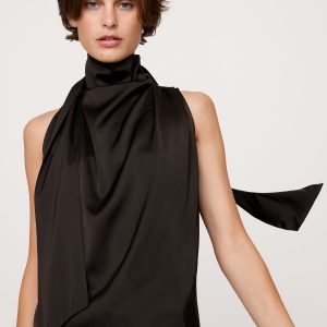 So many ways to wear, we love this top’s silky, stretch-satin fabric and the extra-long ties at the neck so you can play around with them.